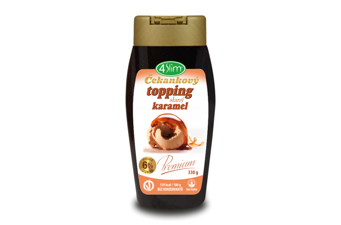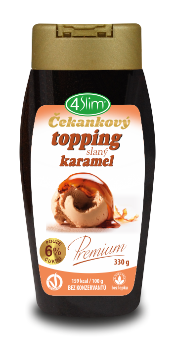 Tekutá poleva z čakankového extraktu s príchuťou karamelu, so sladidlami. Čakankový topping 4slim, to je sladká Low Carb poleva, ktorá sa môže pýšiť nízkym obsahom cukru a tuku na rozdiel od iných toppingov. Je úplne bez lepku, bez laktózy, bez konzervačných látok, s vysokým obsahom vlákniny a so zníženou energetickou hodnotou. Preto je vhodná pre všetky druhy diét.