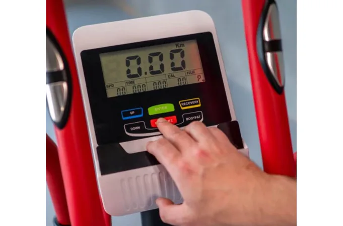 ELEKTRICKÝ PROGRAMOVATEĽNÝ ELIPTICAL BE91E predstavuje model ellipticalu s modernými prvkami, ktoré sa od takéhoto posilňovacieho stroja očakávajú. Stroj je napájaný zo siete pomocou adaptéra - spotreba elektriny na napájanie počítača aj motora záťaže je 10 Wh. To umožňuje plne automatickú reguláciu záťaže podľa zvoleného programu.