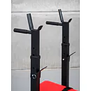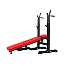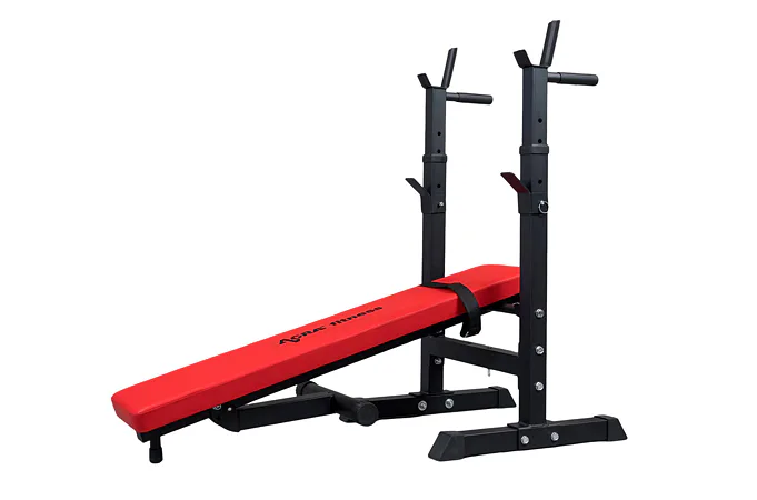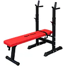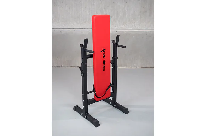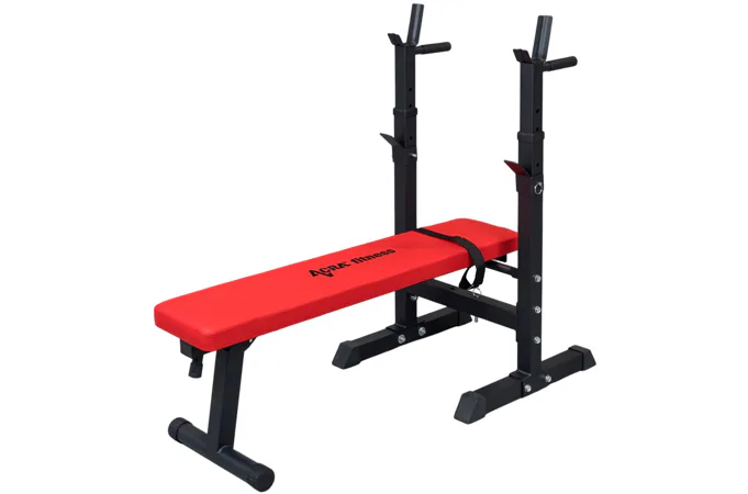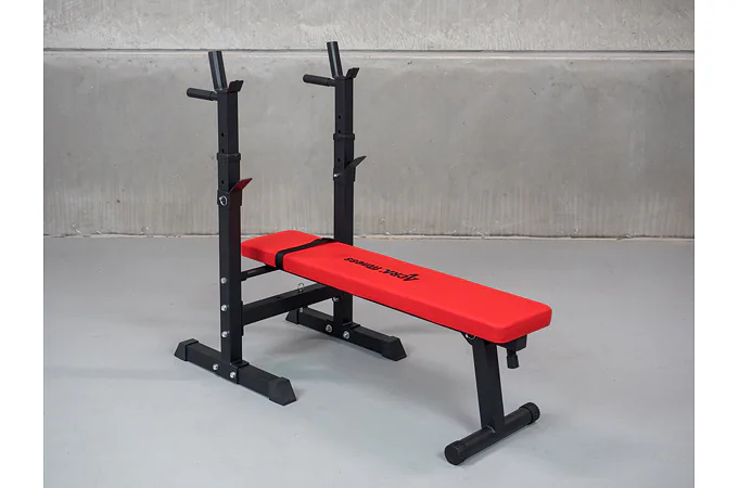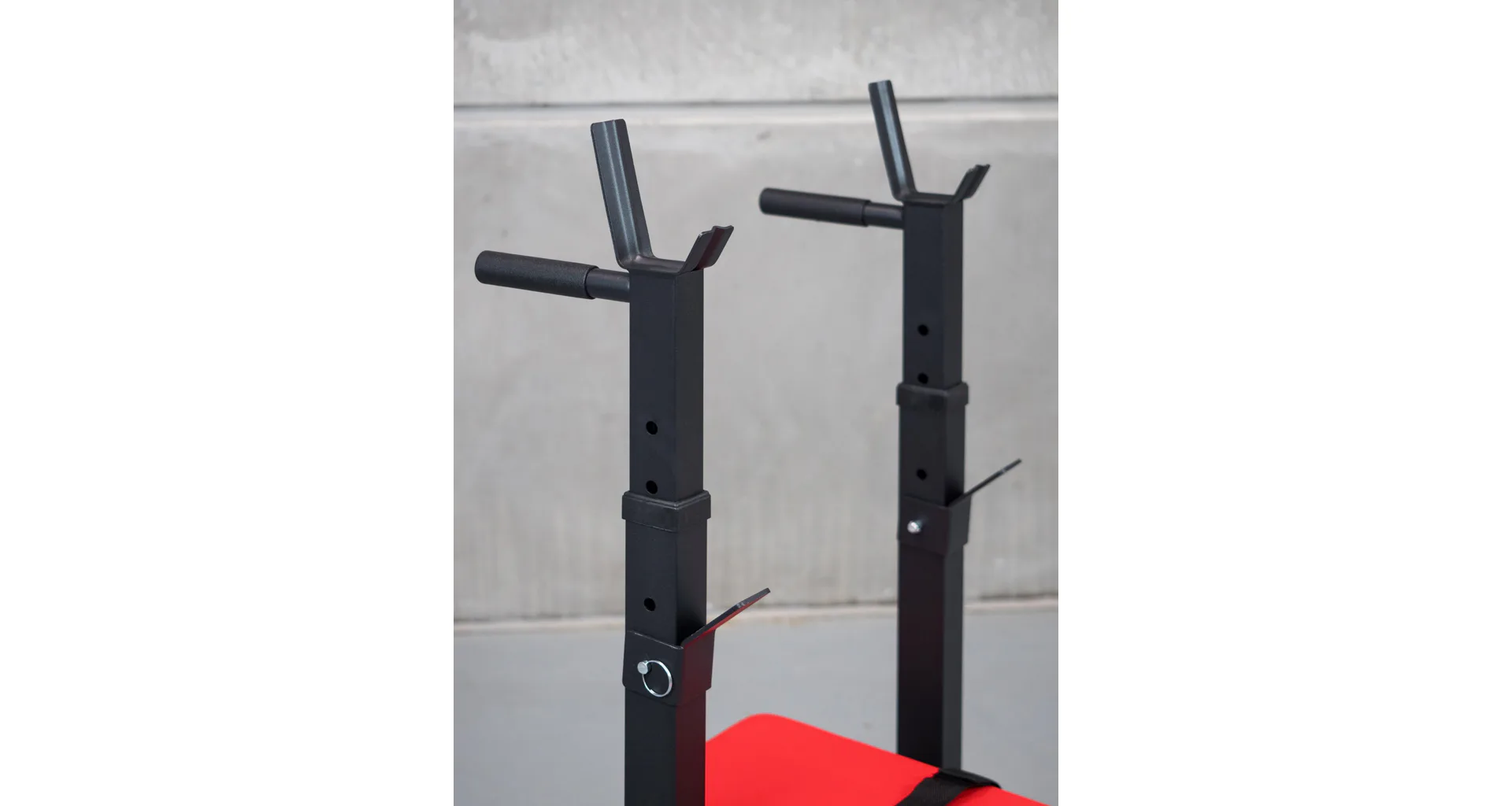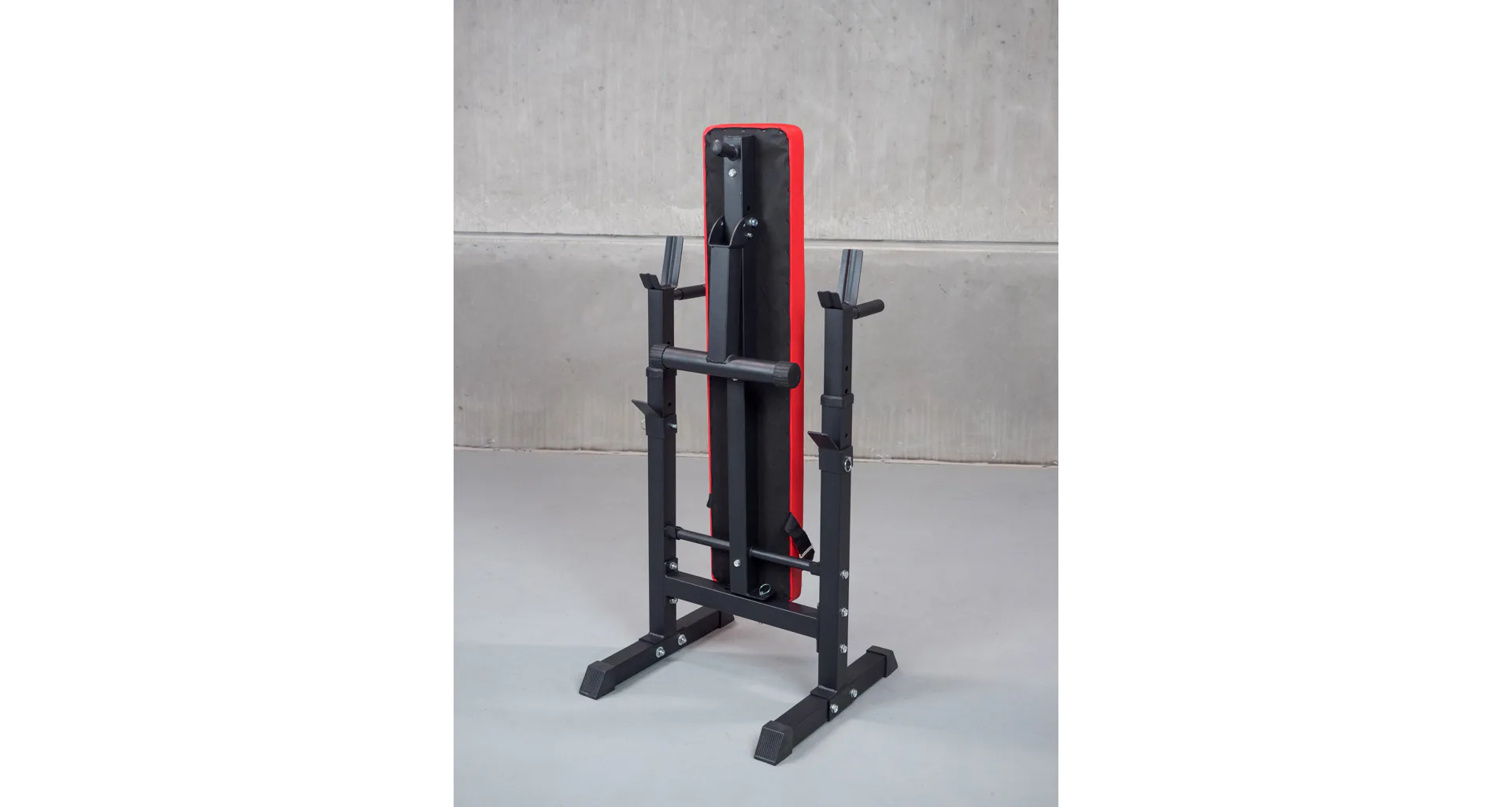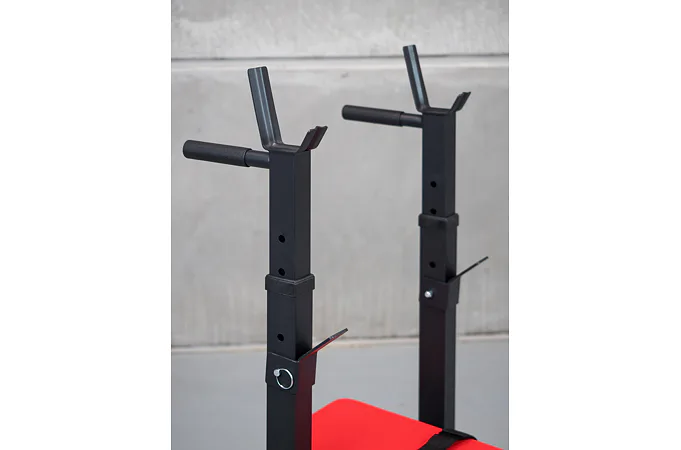 Posilňovacia lavica má stabilnú trojuholníkovú konštrukciu v kombinácii so silnými materiálmi, ktoré zaisťujú vašu bezpečnosť počas cvičenia. Ďalej je doplnená 2 podperami na činky. Polstrovaný povrch lavice zabezpečuje komfort.