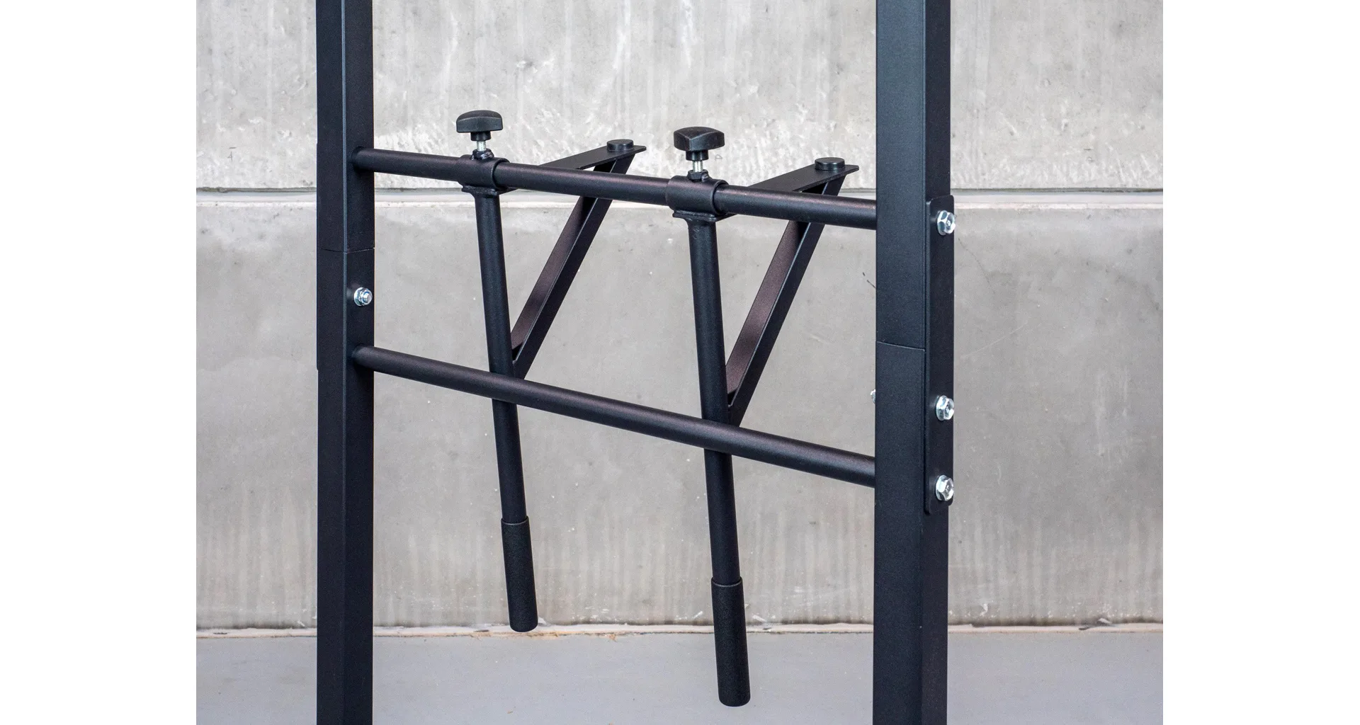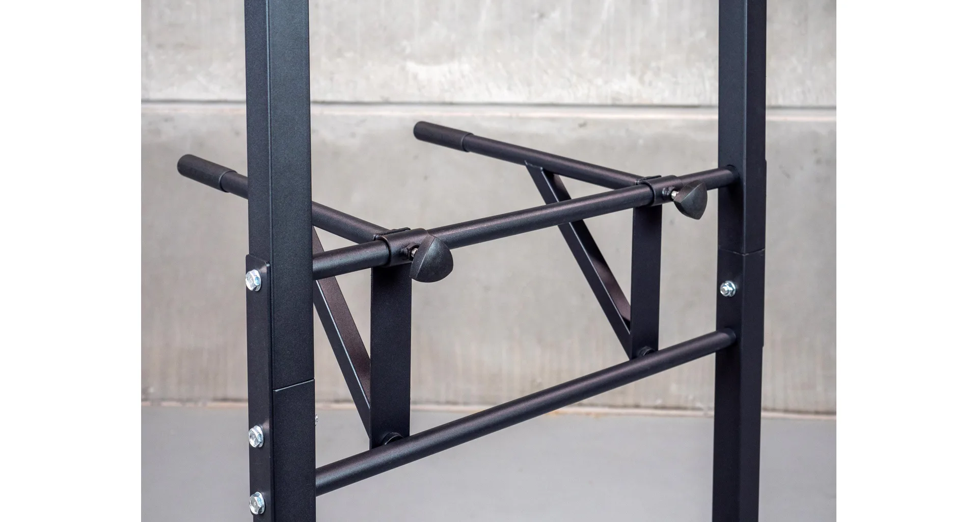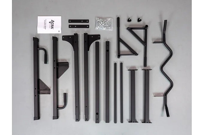 Jedná sa o voľne stojacu stojanovú konštrukciu s bradlami a hrazdou. Okrem hrazdy na zhyby a podstavca na priťahovanie či zdvíhanie nôh disponuje odolným rámom, ktorý je opatrený povrchovou úpravou v čiernej farbe. Stabilná konštrukcia zaisťuje bezpečnosť a komfort počas cvičenia.