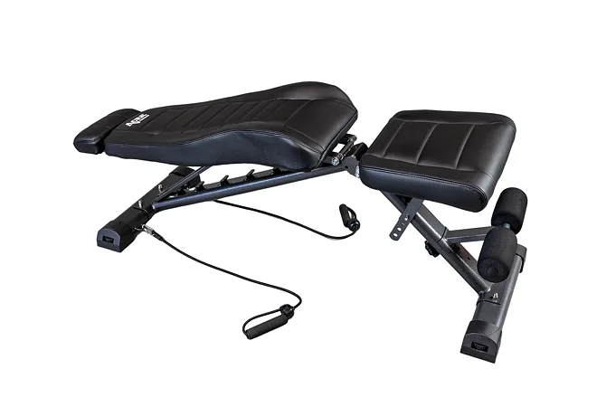 Vďaka nastaviteľnej opierke chrbta do 8 úrovní a nastaviteľnému sedadlu do 4 úrovní ponúka lavica širokú variabilitu pre váš tréning. Na lavici si precvičíte napríklad prsné svaly, deltové svaly (ramená) a brušné svaly. Opierka chrbta je nastaviteľná aj do negatívneho sklonu, čo umožňuje lepšie zapojenie brušných svalov. Pre väčšiu stabilitu obsahuje lavica opierku na nohy nastaviteľnú do 3 pozícií. Lavica je vybavená očkami na zadných nohách pre pripojenie expandéra, ktorý umožňuje komplexné cvičenie celého tela.