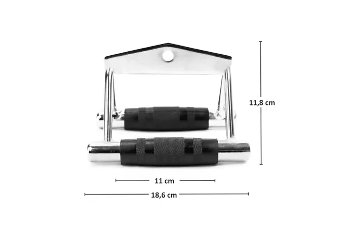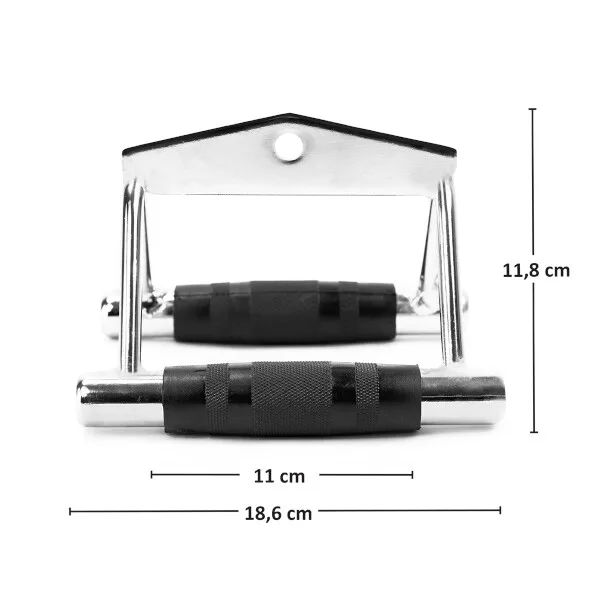 Obojručná rukoväť s gumou HMS UW04B vhodná k cvikom na chrbát, presnejšie príťahom spodnej kladky, príťahom osi k hrudi a iných. Vďaka tomuto adaptéru sa rozšírili možnosti posilňovania na kladkových posilňovacích strojoch. Ľahký a odolný doplnok je opatrený dvoma ergonomicky tvarovanými pogumovanými úchopmi, ktoré zaisťujú maximálne komfortné držanie.