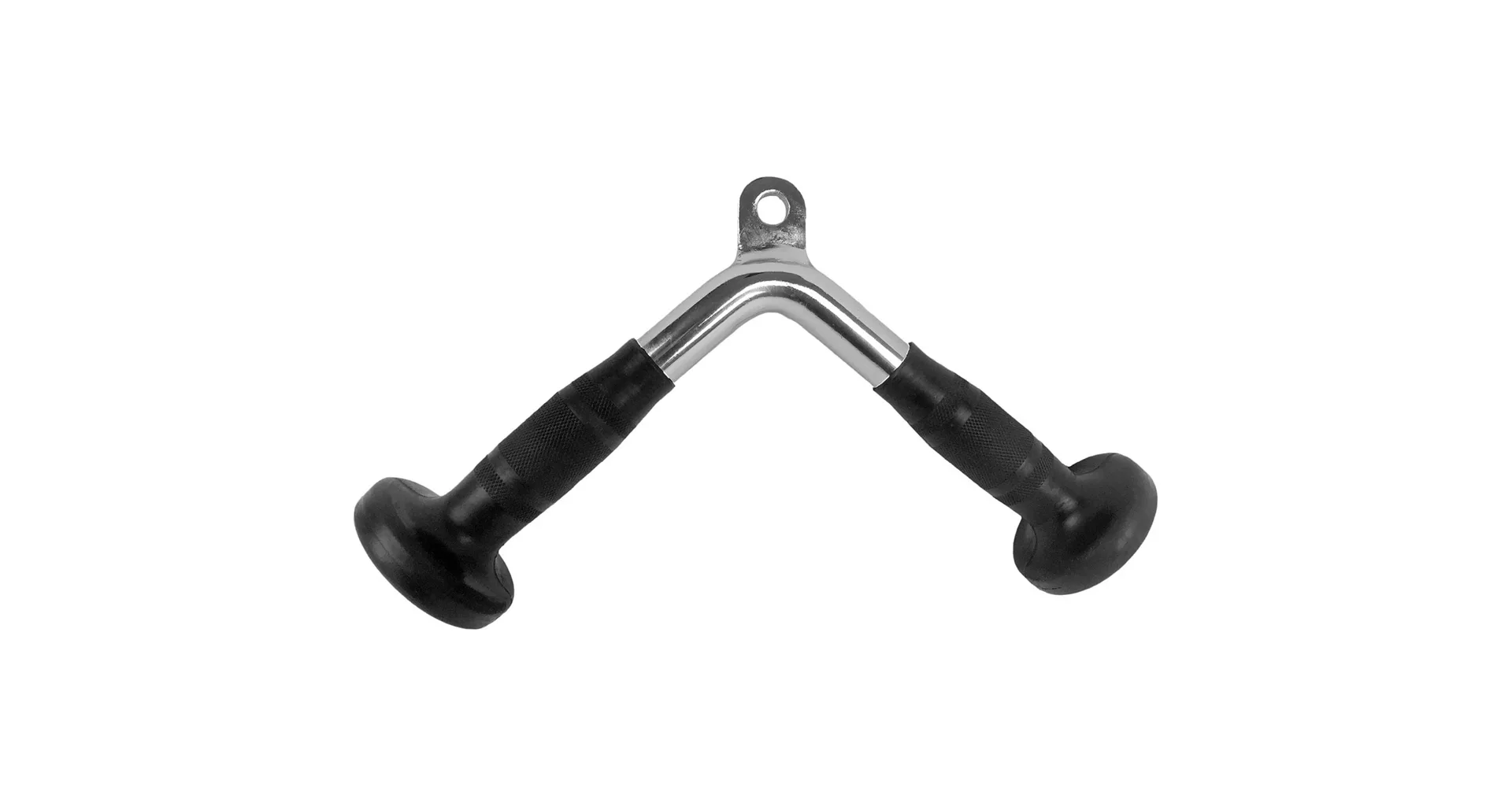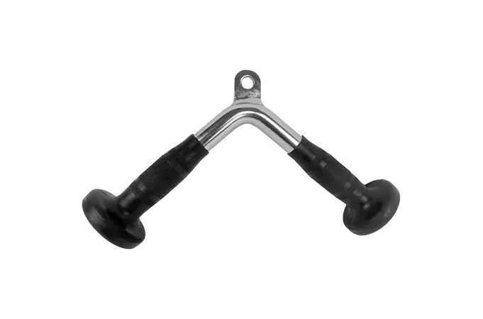 TUNTURI adaptér triceps V-tvar - pogumovaný je rozširujúcim doplnkom pre všetky kladkové posilňovacie stroje. Konštrukcia je vyrobená z odolnej ocele, čo je zárukou dlhej životnosti. Rukoväte sú vybavené protišmykovým gumovým materiálom, ktorý napomáha k pevnému a komfortnému chyteniu. Ergonomický tvar V umožňuje plný rozsah pohybu behom precvičovania bicepsov a tricepsov. Tento tvar umožňuje tiež precvičovať tie svalové partie, ktoré klasický úchop nezahŕňa a posilňovací stroj tak získava nový rozmer.