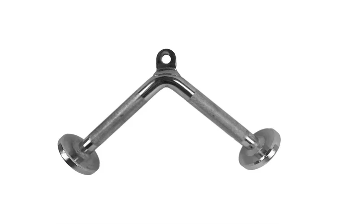TUNTURI adaptér triceps V-tvar je rozširujúcim doplnkom pre všetky kladkové posilňovacie stroje. Konštrukcia je vyrobená z odolnej ocele, čo zaručuje dlhoročnú životnosť. Rukoväte sú opatrené chrómovaným radlovaným materiálom, ktorý napomáha pevnému a komfortnému stlačeniu. Ergonomický tvar V umožňuje plný rozsah pohybu počas precvičovania bicepsov alebo tricepsov. Tento tvar umožňuje taktiež precvičovať tie svalové partie, ktoré klasický úchop nezahŕňa a posilňovací stroj tak získa nový smer.
