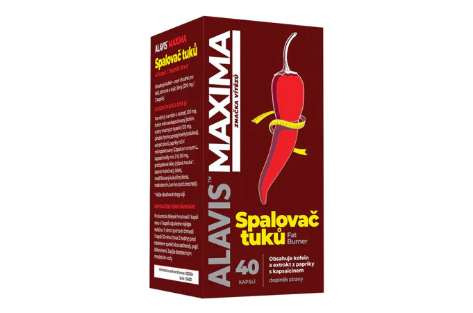 ALAVIS™ MAXIMA Spaľovač tukov obsahuje koncentrovaný extrakt z prirodzene sa vyskytujúcich zlúčenín prítomných v plodoch papriky ročnej (Capsicum anuum L.) štandardizovaný na obsah kapsaicinoidov min. 2%. Je vyrábaný jedinečnou technológiou zapuzdrenia (mikropeletácia), ktorá umožňuje postupné a dostatočné uvoľňovanie účinnej látky bez žalúdočných ťažkostí. Má jedinečnú schopnosť vytvárať teplo v tele a tým pomáha zvýšiť rýchlosť metabolizmu ako sacharidov, tak aj lipidov. Súčasne potláča chuť do jedla, čím prispieva k zníženiu príjmu kalórii a kontrole telesnej hmotnosti.