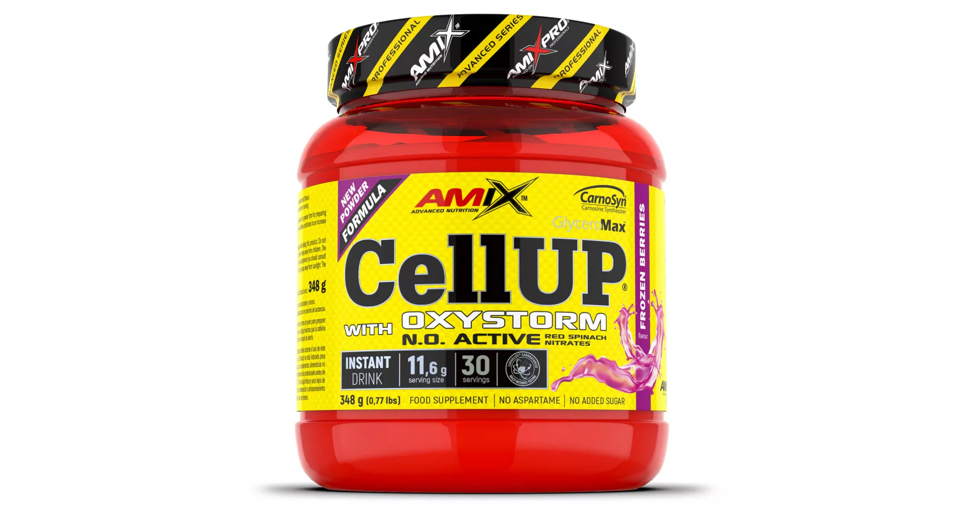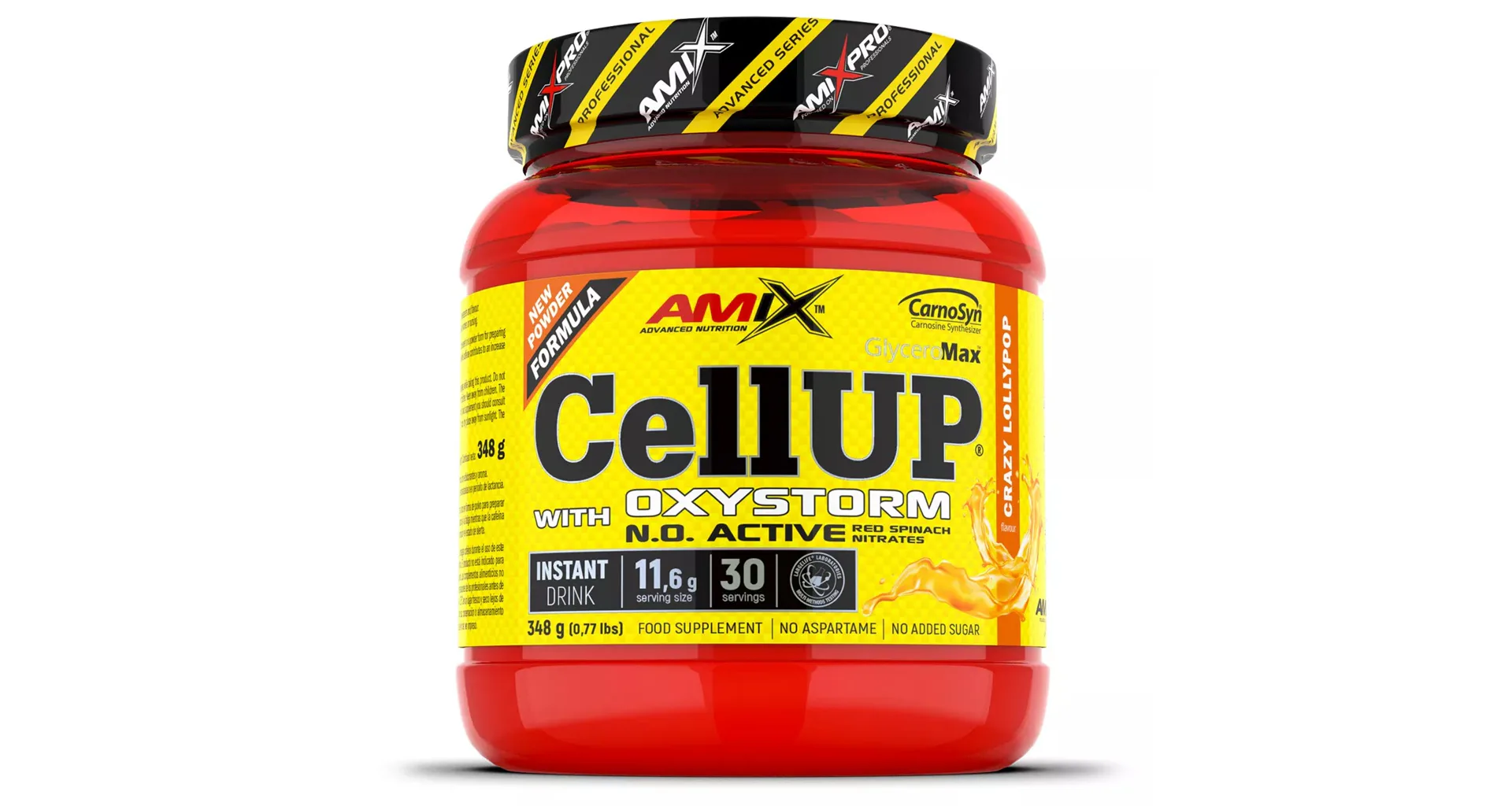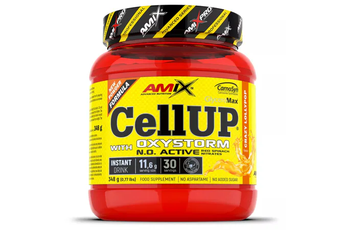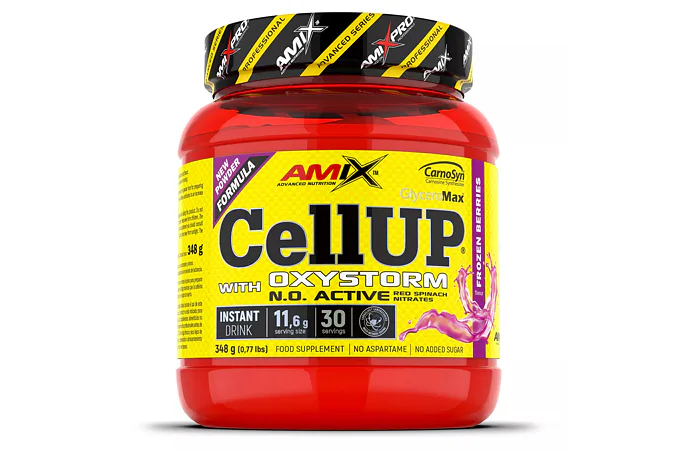 AmixTM CellUp® with Oxystorm® je unikátny super koncentrovaný predtréningový doplnok v práškovej forme na prípravu osviežujúceho a chutného nápoja. Vitamíny C a B6 prispievajú k zníženiu únavy a vyčerpaniu, zatiaľ čo kofeín prispieva k zvýšeniu odolnosti, pomáha zlepšiť koncentráciu a bdelosť. Zloženie Amix CellUP tvorí skrátka perfektnú kombináciu pre maximálne napumpovanie a nakopnutie pred tréningom.