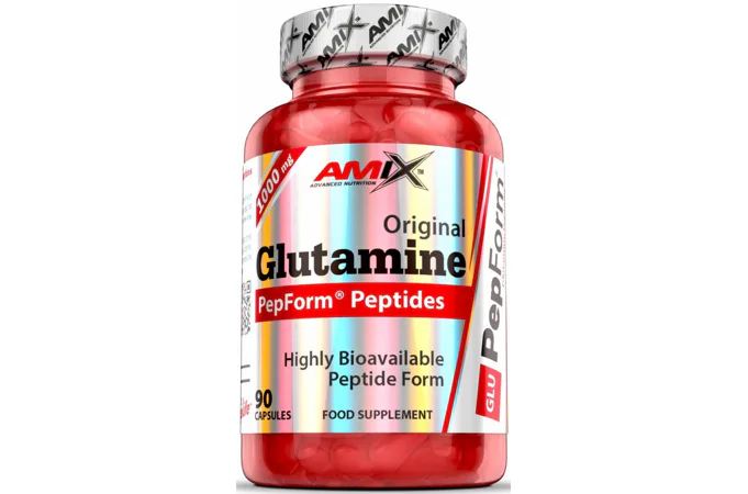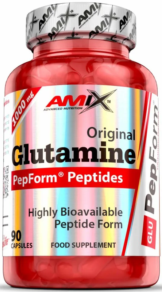 Zloženie: PepForm® Glutamín Peptidy (srvátkové peptidy /z mlieka/, L-Glutamín), želatínová kapsula (želatína, voda, farbivo: oxid titaničitý), látky protispekavé: stearát horečnatý, oxid kremičitý.