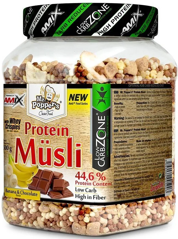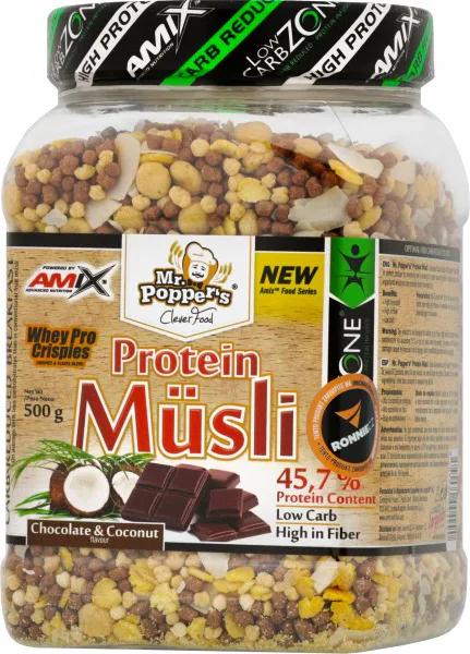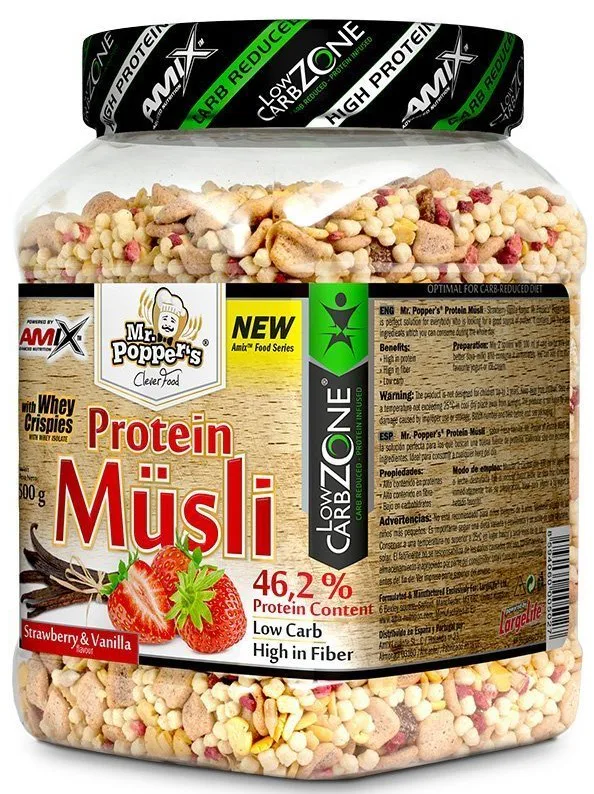 Mr. Popper´s® Protein Müsli je perfektné riešenie pre každého, kto hľadá potravinu bohatú na bielkoviny. Zmes obsahuje iba kvalitné výberové suroviny, ktoré môžete konzumovať počas celého dňa.