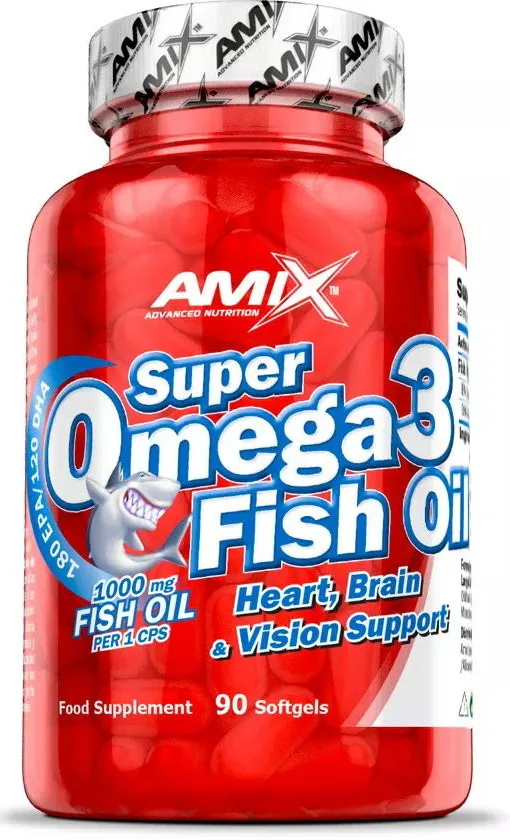 Amix Super Omega 3 Fish oil 90 kapsúl - Poskytuje zdroj nenasýtenej mastnej kyseliny Omega 3 (EPA - kyselina eikosapentaenová a DHA - kyselina dokosahexaenová). Kyseliny EPA a DHA prispievajú k normálnej činnosti srdca.