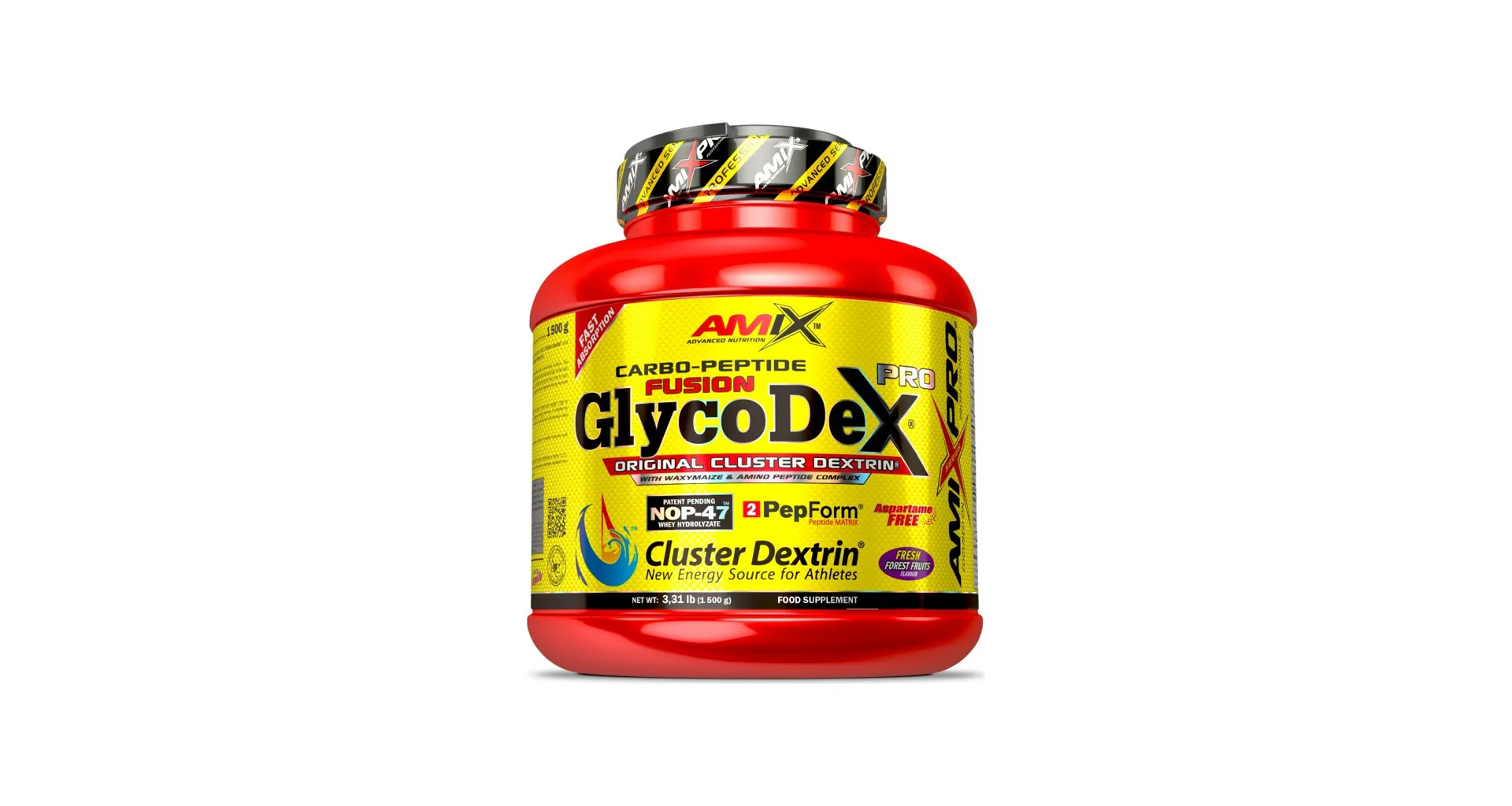 GlycodeX® je kombinácia vysoko rozvetveného cyklického dextrínu (HBCD) Cluster Dextrin® a škrobu z voskovej kukurice Waxy, všetko obohatené o NOP-47™ a PepForm™ Matrix 1:1.