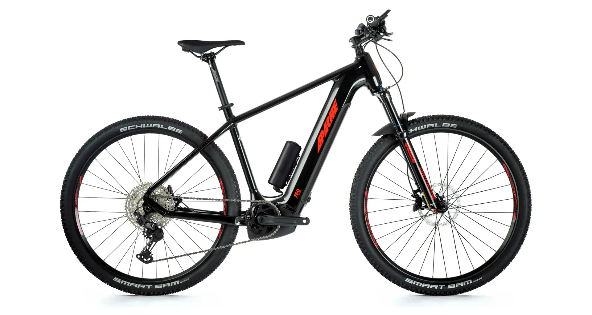 APACHE Hupahu 2 Bosch CX je horské elektrokolo vhodné nejen pro pány. Hupahu je e-bike s plně integrovanou baterií v rámu kola, přídavnou baterií pro navýšení dojezdu, sportovním designem a odpruženou přední vidlicí. Kapacita baterie je 20,1 Ah (750 Wh) + 6,9 Ah (250 Wh) v přídavné baterii.