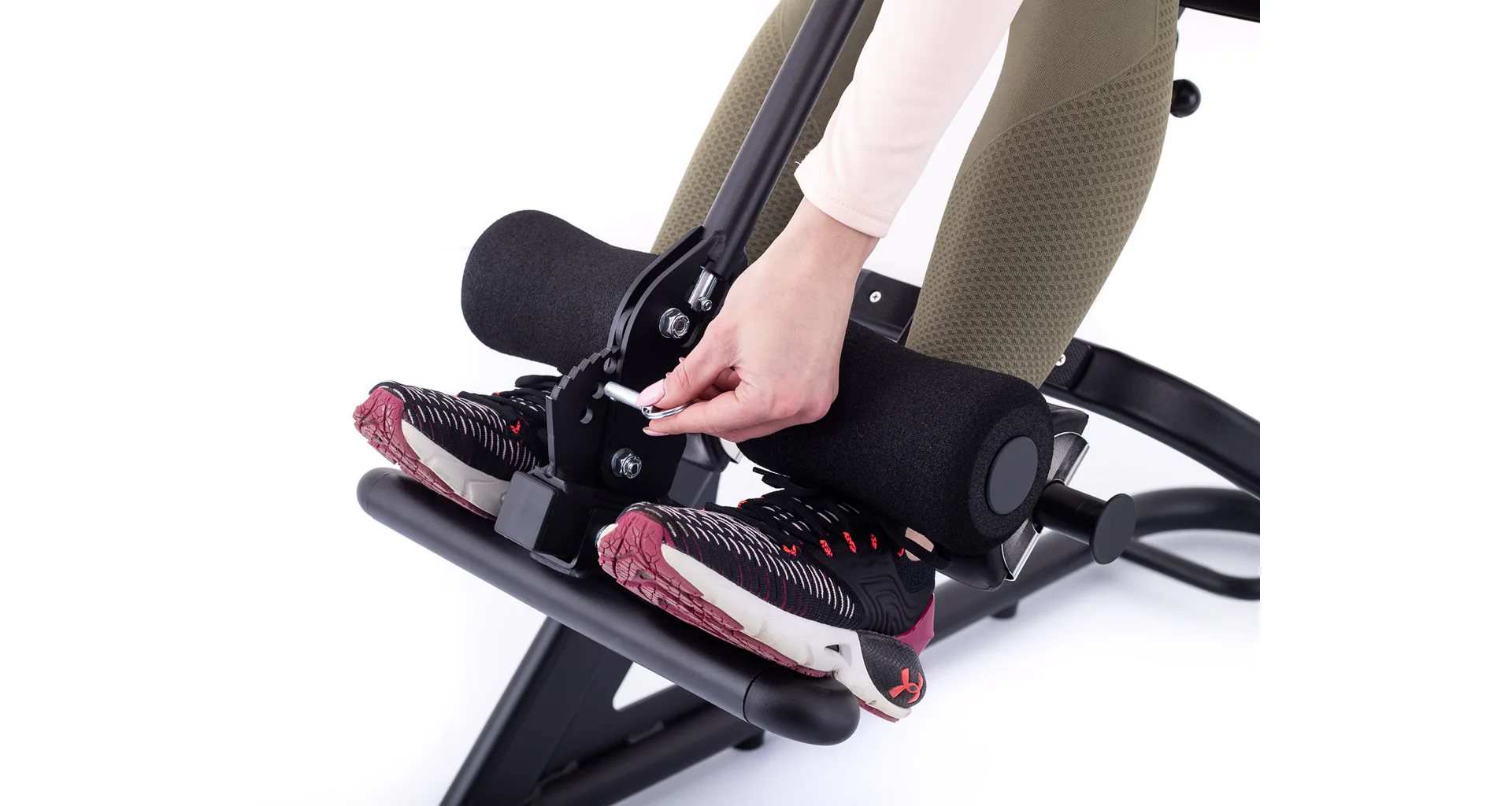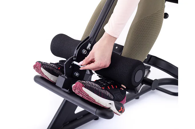 Pomocí nastavitelné tyče s pěnovými válci snadno a rychle zafixujete chodidla. Pěnové válce navíc napomáhají vyšší stabilitě, díky čemuž máte větší pocit bezpečí a stability.