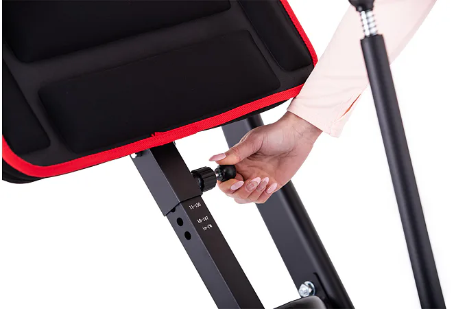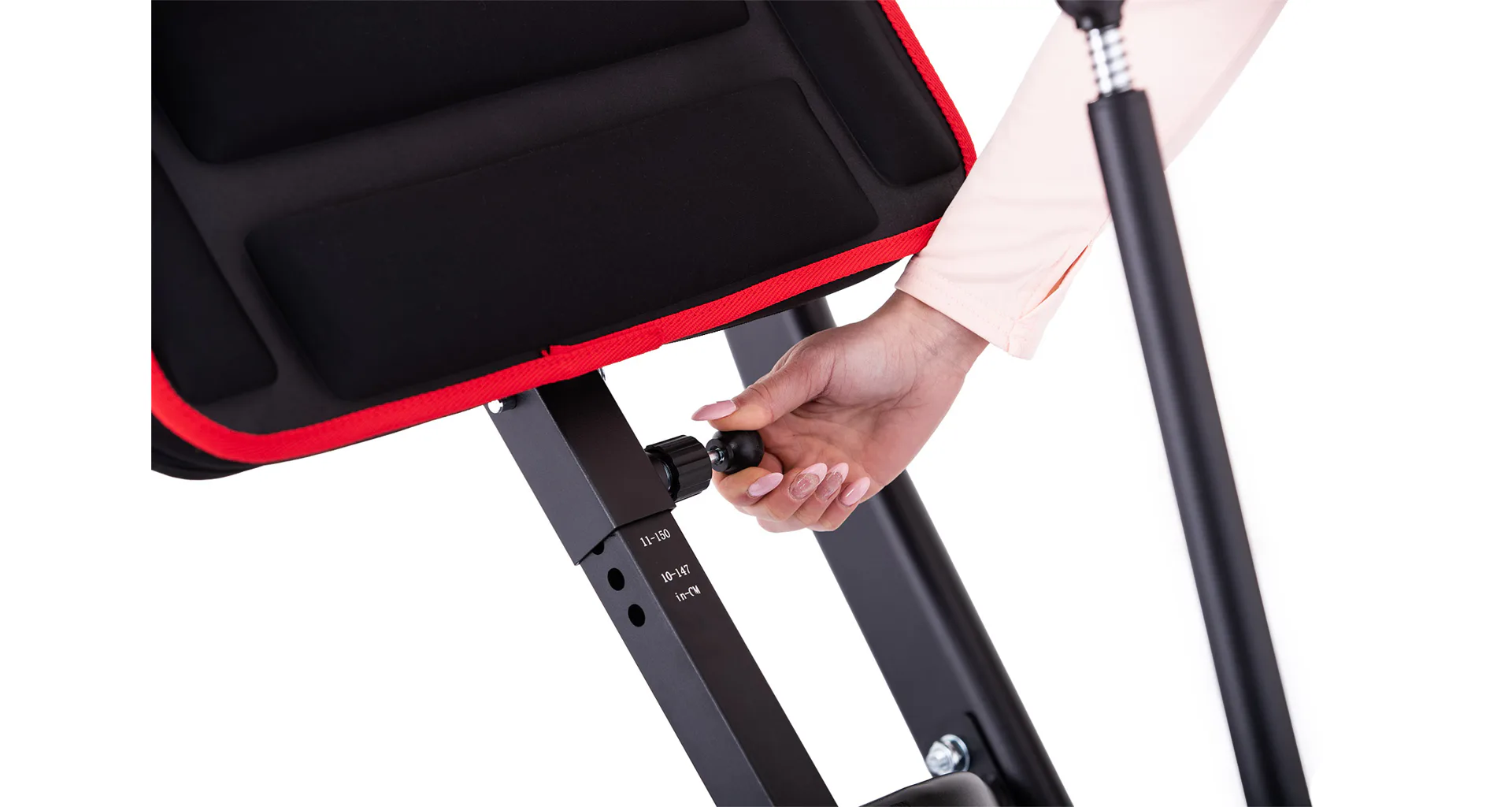 Lehátko má mnoho možností nastavení, což v kombinaci s velkým flexibilním opěradlem, které se přizpůsobuje zádům, činí lavici vhodnou pro lidi různých výšek. Nastavení výšky je velmi snadné a provádí se pomocí zajišťovacího kolíku pod zádovou opěrkou. Lehátko má přesné nastavení dle výšky člověka a je vhodné pro osoby v rozmezí výšky 147–197 cm.