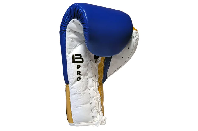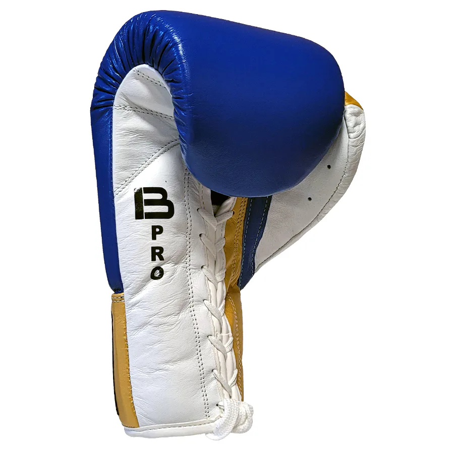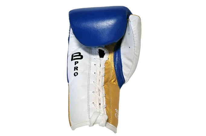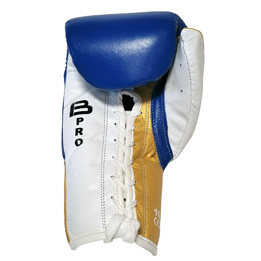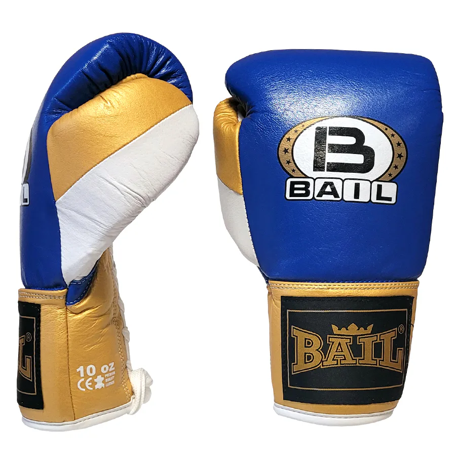 Alternativy k BAIL boxerské rukavice Profi šnurovacie - koža veľ. 10 oz modrá biela zlatá