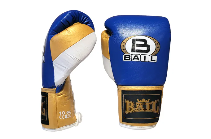 Boxerské rukavice Profi - koža šnurovacie 10 oz modré BAIL. Ponúkajú ochranu so zvýšeným polstrovaním päste a priedušné vnútro. Tieto rukavice sú vyrobené na absorpciu aj tých najtvrdších úderov. Autentické tradičné logo BAIL zdobí rukavicu na chrbte ruky. Dlaň je úplne perforovaná pre maximálny komfort. Farba rukavíc a šnúrok je ladená do štýlu modrej-bielo-zlatej farby.