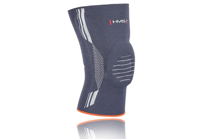 HMS KO1125 je bandáž na koleno s integorvaným silikónovým krúžkom pre stabilizáciu jabĺčka bez obmedzenia hybnosti kolena. Použitý materiál je veľmi pružný a dokonale priľne k pokožke a taktiež odvádza vlhkosť. V oblasti kolena je bandáž rozšírená pre maximálny komfort počas pohybu. Silikónový prstenec umiestnený v čiapočke zaručuje presné umiestnenie jabĺčka, jej stabilizáciu a predchádza tak zraneniu kolena.