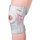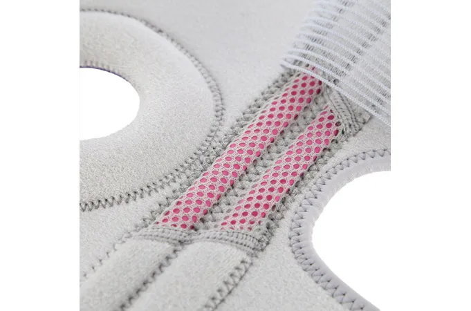 KO1505 má zapínanie na suchý zips a prídavné gumičky pre stabilizáciu kolena jabĺčka. Jej anatomická profilácia sa dokonale prispôsobuje tvaru tela. Vďaka absencii dláh alebo výstuh je možné bandáž používať pri športových aktivitách.
