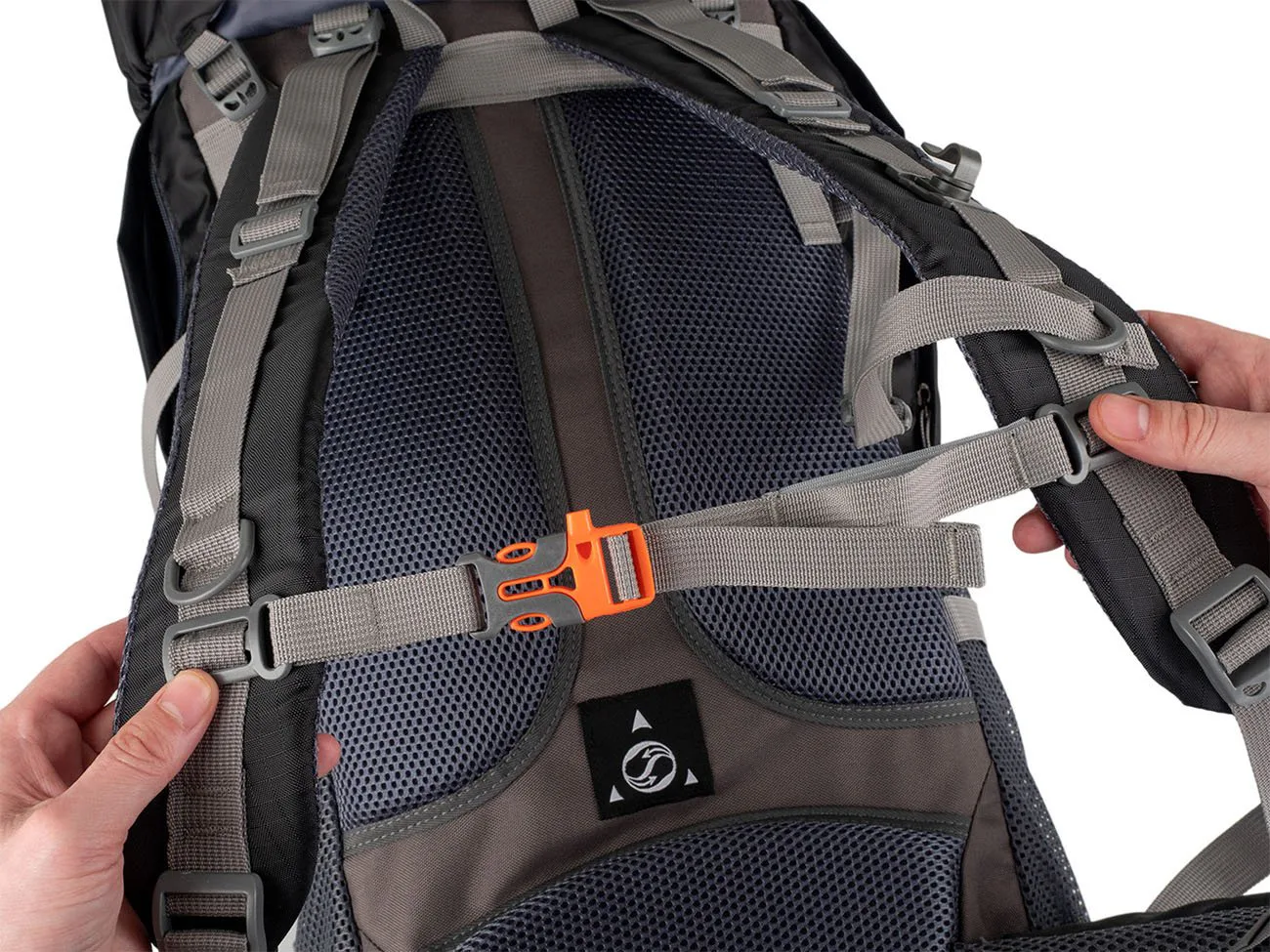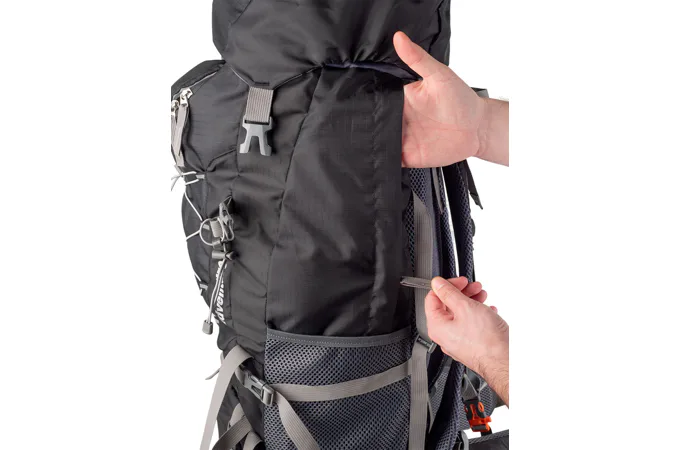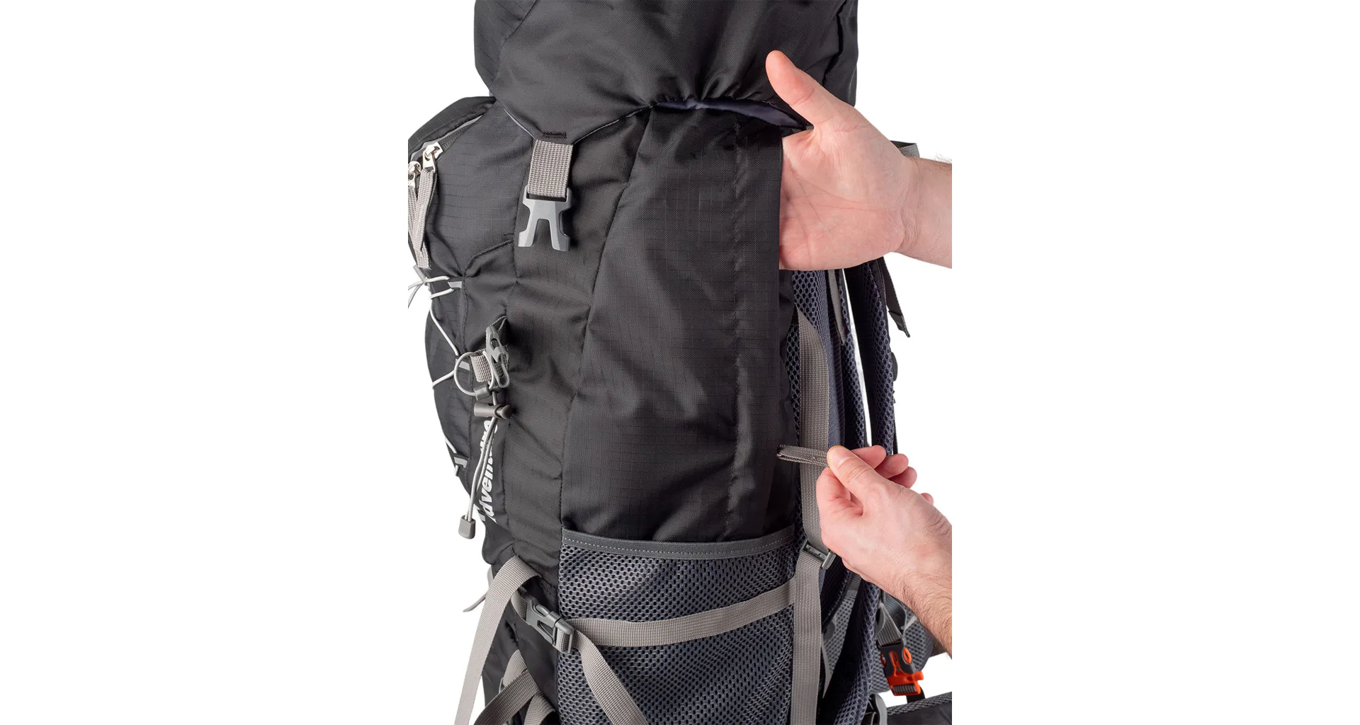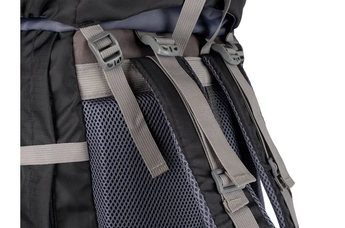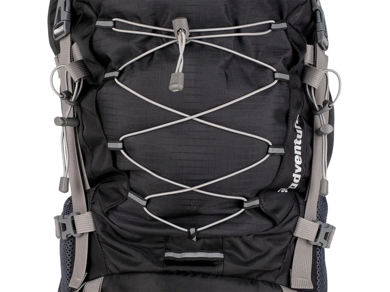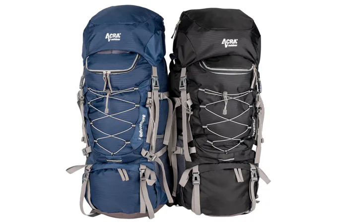 Kvalitný turistický batoh na horskú turistiku Adventure ACRA BA75-MO 75 l s ľahkou nosnou hliníkovou konštrukciou a s vystuženou (plastovými výstuhami) dobre odvetrávanou chrbtovou časťou sa hodí na dlhé turistické výlety aj na náročné horské. Svojou kompaktnosťou, veľkým množstvom rôznych vreciek a mnohých pútok a úväzkov je veľmi účelne vybavený aj pre náročných horských turistov.