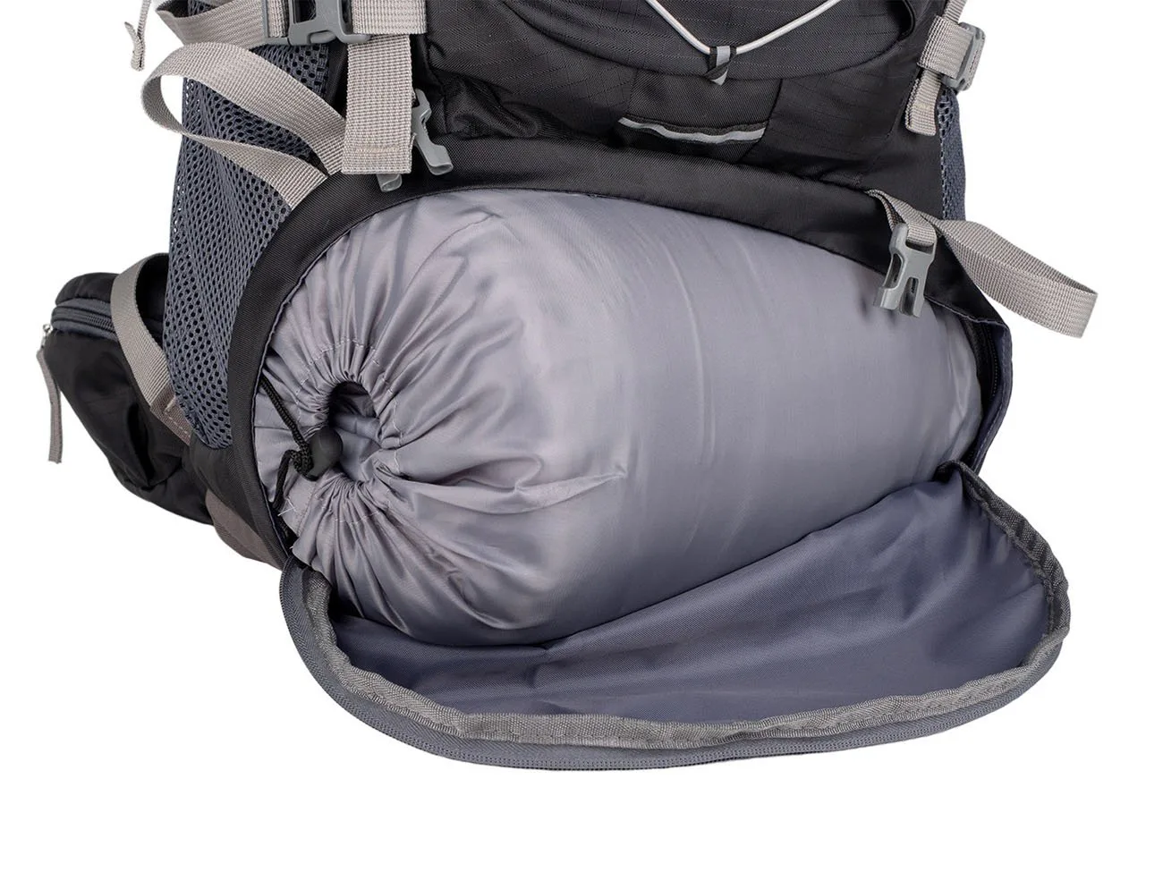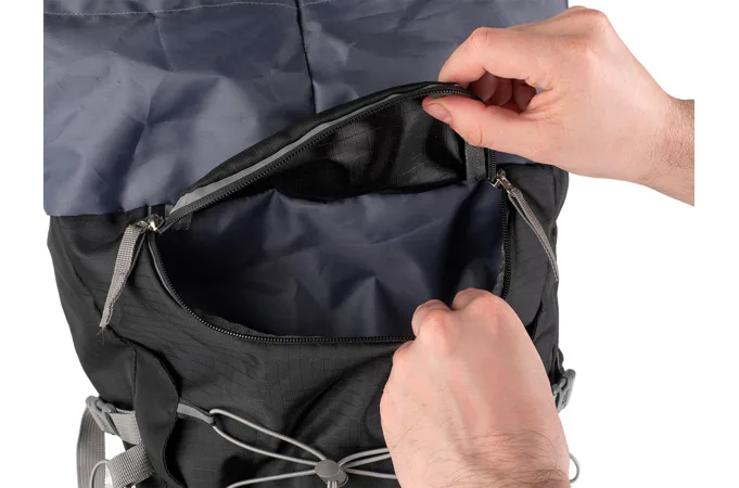 Do spodnej časti je prístup otvorením zipsu na prednej steqne batohu. Vytvorený priestor slúži na oddelenie napr. topánok od ostatných použitých alebo špinavých vecí od ostatného nákladu. 2 veľké sieťované vrecká so sťahovacou pružinkou po stranách batohu a vpredu uprostred umiestnené zvislé vrecko na zips umožňuje praktické rozmiestnenie prenášaných vecí.