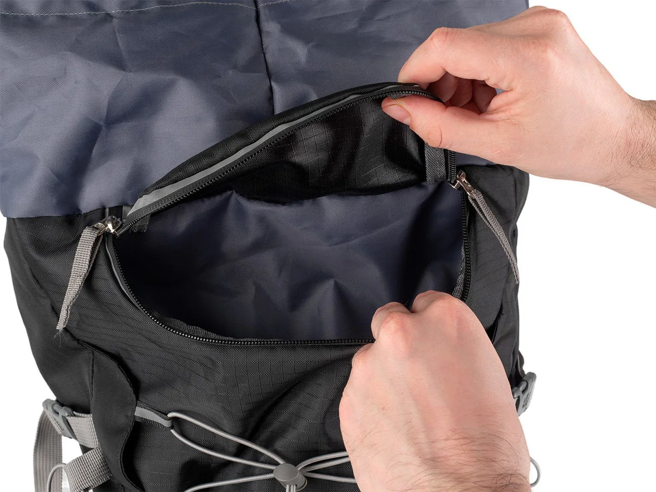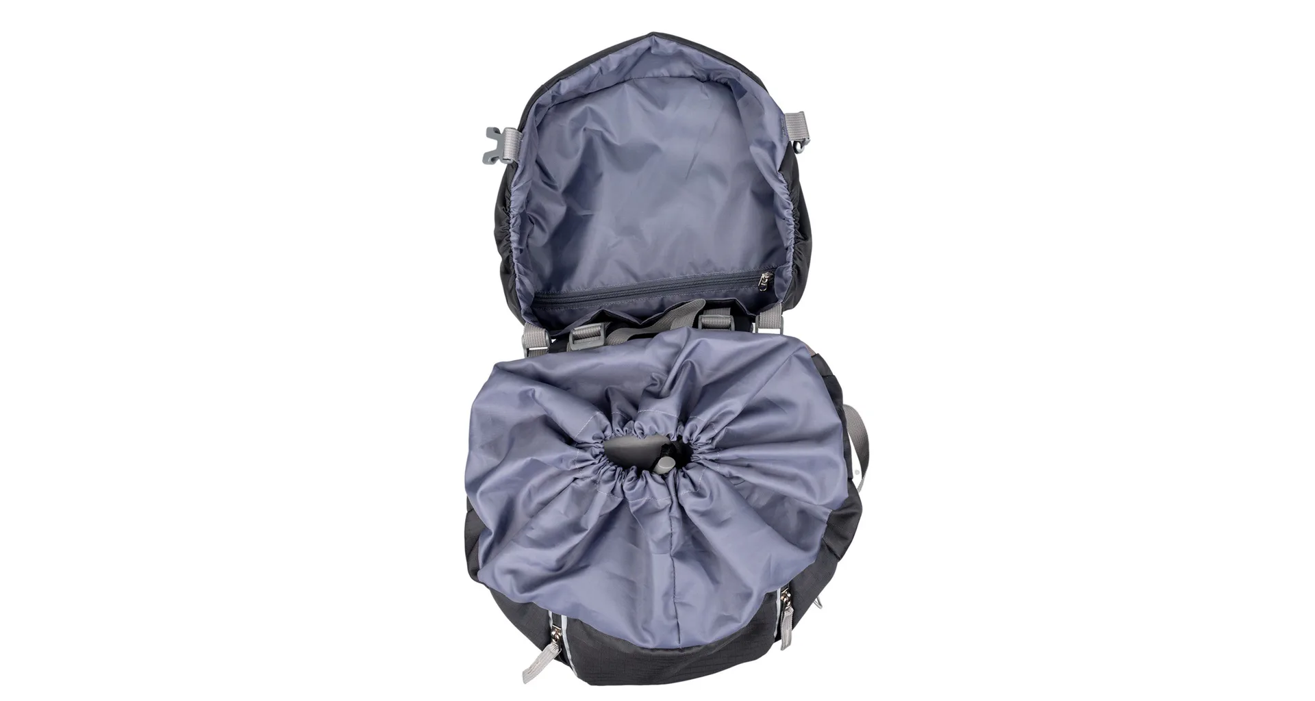 Batoh má 10 rôznych vreciek a oddielov - jednu hlavnú komoru s vrchným vstupom s obojstrannými zipsami, jednu spodnú komoru oddelenú vnútornou priečkou v hlavnom vrecku. Sťahovacím lanom sa vnútorný priestor rozdelí na dve časti.
