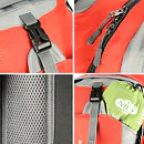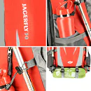 Predné vrecko je vybavené popruhom s prackou a je určené na menšie predmety ako je napríklad peňaženka, mobilný telefón alebo tablet. U pútka je malé vrecko na zips vhodné napríklad pre svietidlo. Po stranách batohu sa nachádzajú 2 priehradky, ktoré pojmú napríklad fľašu s vodou, dlhšie predmety je možné dodatočne zafixovať popruhmi s prackou. Pútka po stranách slúži na uchytenie turistických palíc. Zo spodnej strany batohu sa nachádzajú 2 dĺžkovo nastaviteľné popruhy, ktoré možno použiť napríklad na uchytenie karimatky. Posledné 2 vrecká na zips sa nachádzajú na bedrovom popruhu a dajú sa využiť napríklad na mince, alebo kľúče od domu.