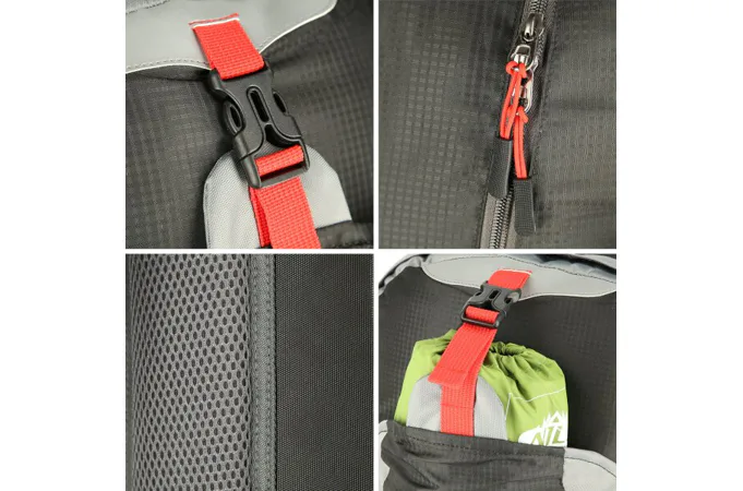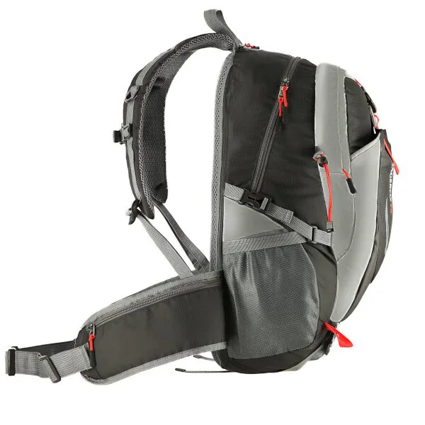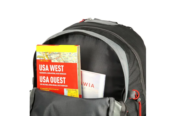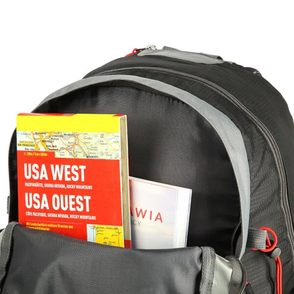 Predné vrecko je vybavené popruhom s prackou a je určené na menšie predmety ako je napríklad peňaženka, mobilný telefón alebo tablet. U pútka je malé vrecko na zips vhodné napríklad pre svietidlo. Po stranách batohu sa nachádzajú 2 priehradky, ktoré pojmú napríklad fľašu s vodou, dlhšie predmety je možné dodatočne zafixovať popruhmi s prackou. Pútka po stranách slúži na uchytenie turistických palíc. Zo spodnej strany batohu sa nachádzajú 2 dĺžkovo nastaviteľné popruhy, ktoré možno použiť napríklad na uchytenie karimatky. Posledné 2 vrecká na zips sa nachádzajú na bedrovom popruhu a dajú sa využiť napríklad na mince, alebo kľúče od domu.