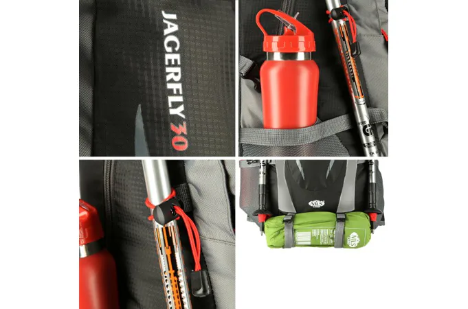 Model Jagerfly má celkom 2 komory s celkovým objemom 30 litrov. Veľká, hlavná komora sa otvára pomocou dvojcestného zipsu, priestor je dostatočne veľký na uloženie všetkých vecí potrebných napríklad na celodenný výlet s deťmi. Do prednej komory sa zmestia dokumenty a zložky do formátu A4.