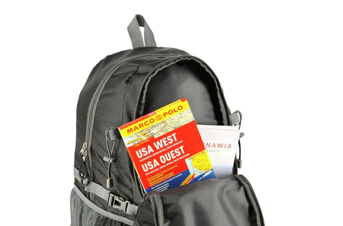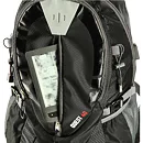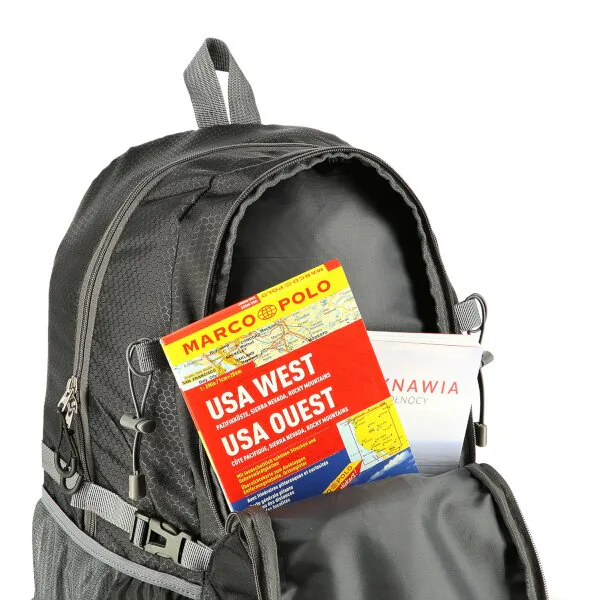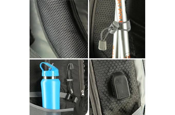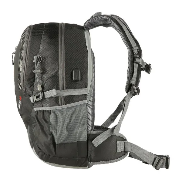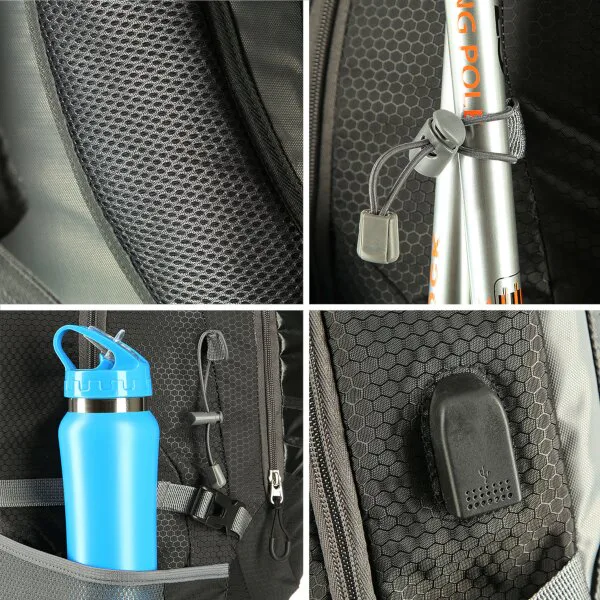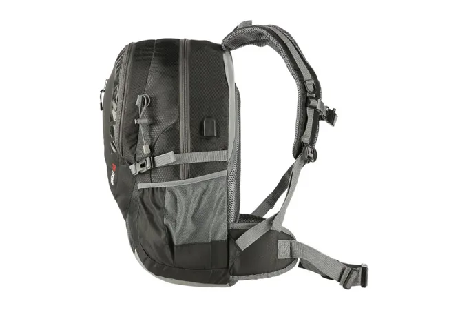 Predná komora je určená na menšie predmety ako je napríklad peňaženka alebo mobilný telefón. Po stranách batohu sa nachádzajú ešte 2 sieťované priehradky, ktoré pojmú napríklad fľašu s vodou, dlhšie predmety je možné dodatočne zafixovať popruhmi s prackou. Na vonkajšej strane hlavnej komory nájdeme USB konektror, ktorý je možné vo vnútri komory pripojiť k powerbanke. Pútka po stranách slúži na uchytenie turistických palíc. Na prednom vrecku nájdeme reflexný štítok, ktorý zvyšuje bezpečnosť za šera.