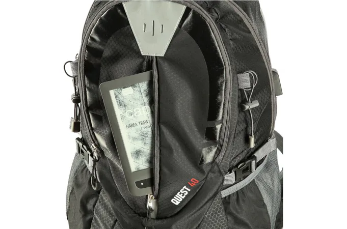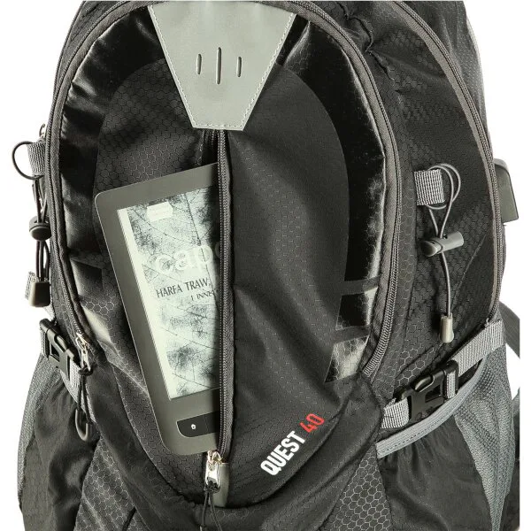 Model Quest má celkom 3 komory s celkovým objemom 40 litrov. Veľká, hlavná komora sa otvára pomocou dvojcestného zipsu, priestor je dostatočne veľký na uloženie všetkých vecí potrebných napríklad na celodenný výlet s deťmi. Do prostrednej komory sa zmestia dokumenty a zložky do formátu A4.