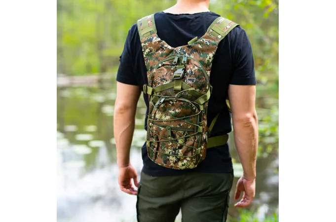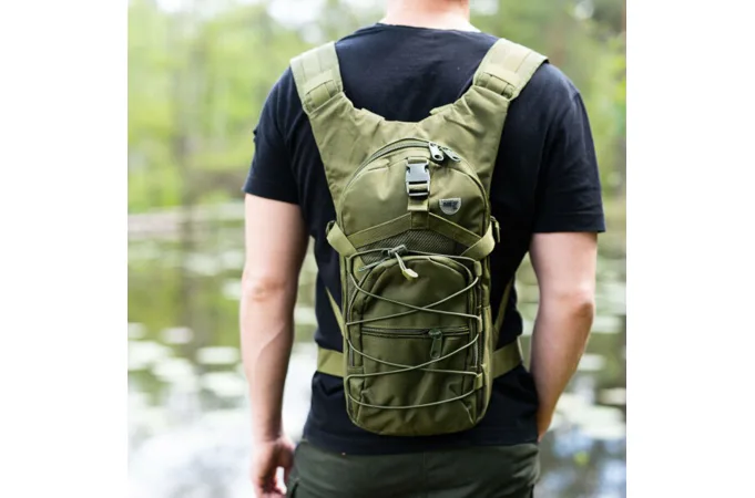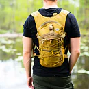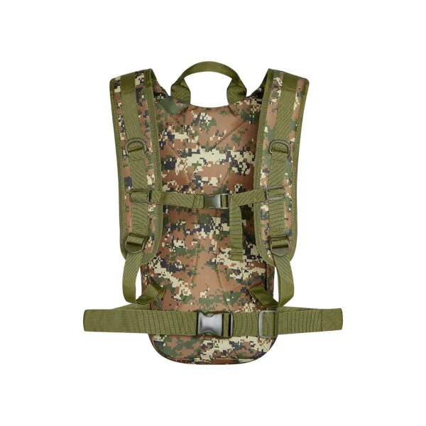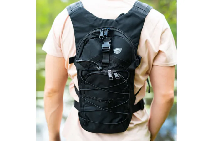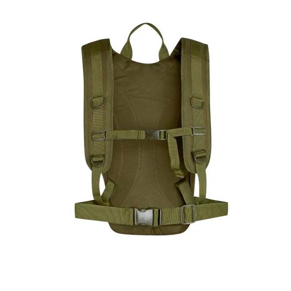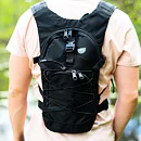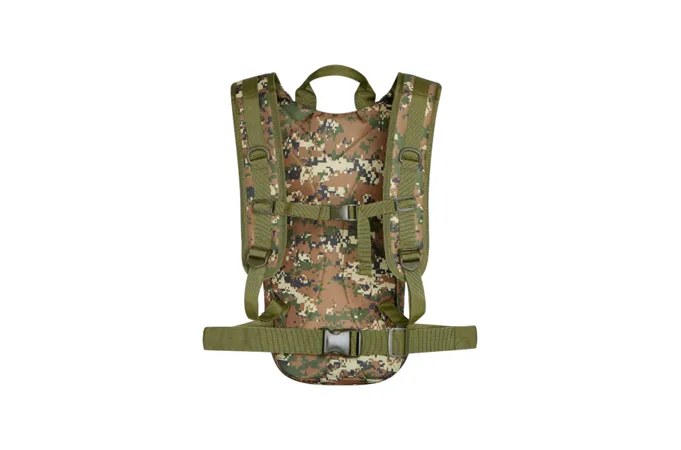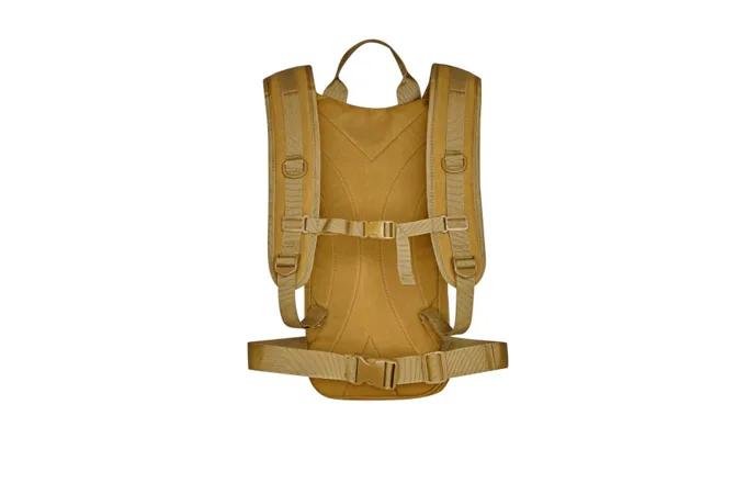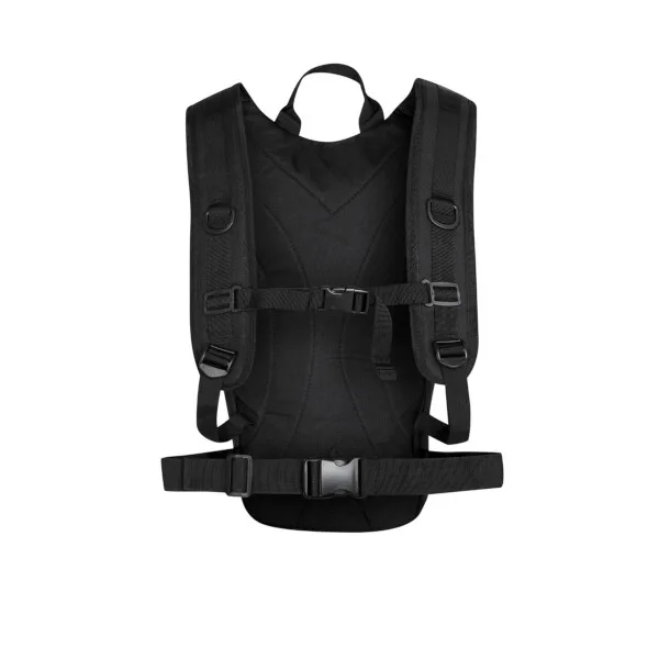 Na hornej strane je robustné ucho na pohodlné prenášanie batohu v ruke. Zadná strana a ramenné popruhy sú polyesterové bez polstrovania. Na popruhoch je gumové pútko na prevlečenie hadičky hydrovaku a hrudný popruh, ten je výškovo a dĺžkovo nastaviteľný. Bedrový popruh s robustnou prackou má šírku 3,5 centimetra.