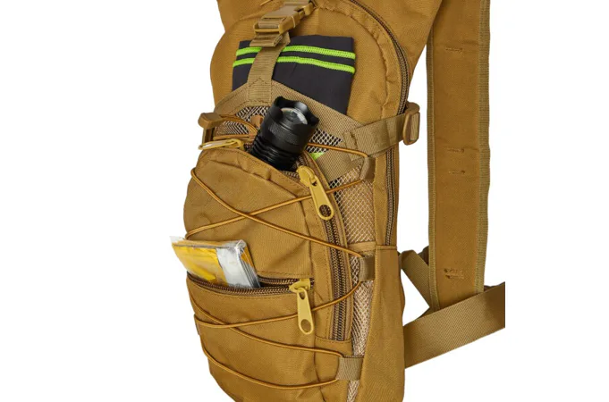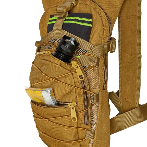 Hlavná komora batohu je opatrená prepážkou, v hornej časti sa nachádzajú 2 karabíny pre zavesenie hydrovaku (nie je súčasťou balenia). Hadičku hydrovaku je možné vyviesť prievlakmi na pravej aj na ľavej strane pod ramennými panelmi. Na hlavnej komore sa nachádzajú ďalšie úložné priestory a to veľké sieťované vrecko s popruhom a prackou - menšie otvorené, sieťované vrecko - 2. komora na zips - vrecko na zips (napríklad pre mobilný telefón a peňaženku) a gumová šnúra s brzdičkou, pod ktorou je možné prenášať napríklad cyklistickú helmu, alebo karimatku. Po stranách batohu sa nachádzajú kompresné popruhy, ktoré sťahujú hlavnú komoru a obe sieťované vrecká.