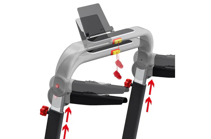 Na madlech jsou vedle snímačů tepové frekvence umístěny tlačítka pro zvýšení nebo snížení a rychlosti a také tlačítka Start a Stop. Madla je také možné nastavit do 2 výškových poloh, pás se tak přizpůsobí menším i větším osobám.