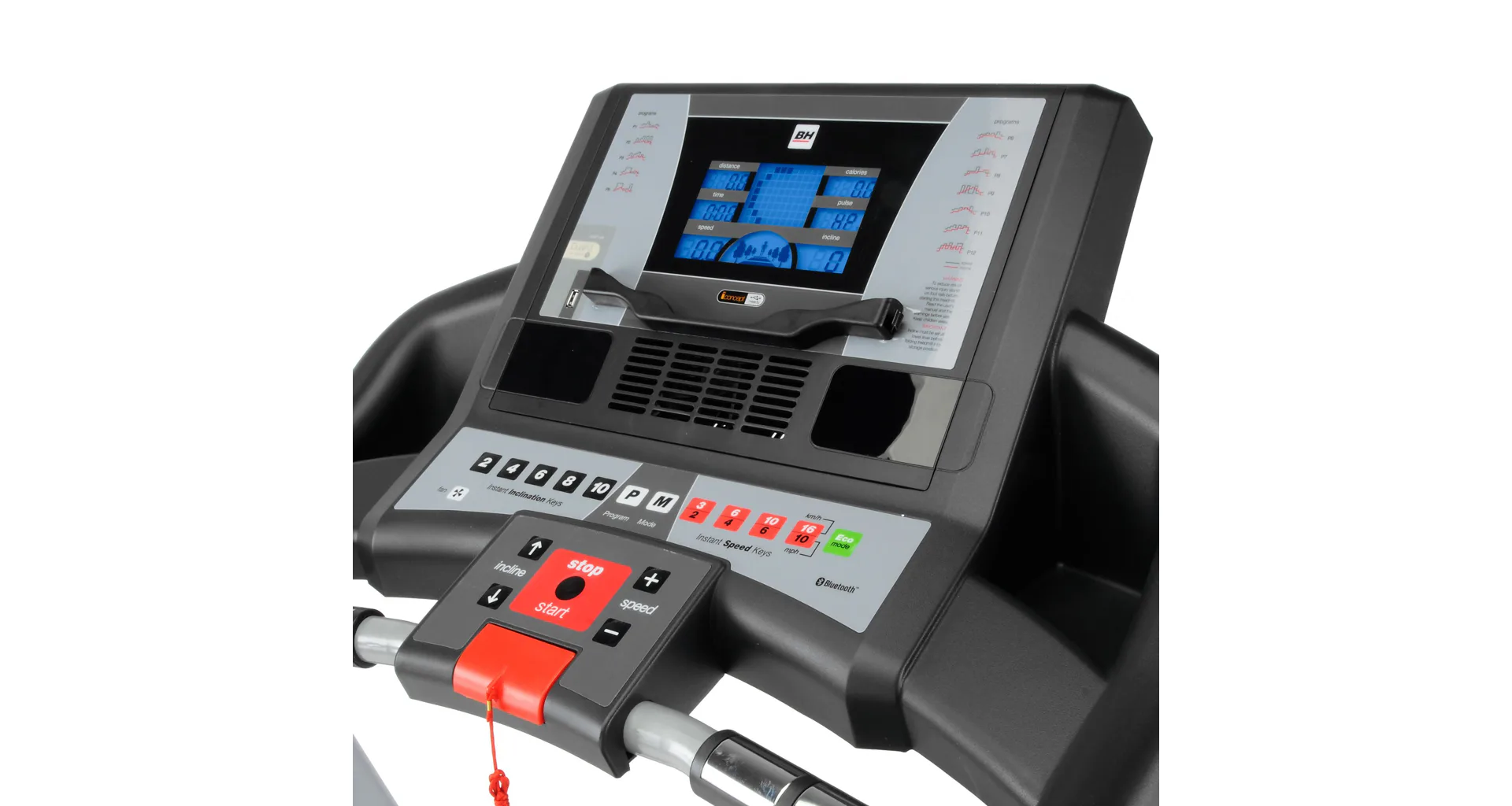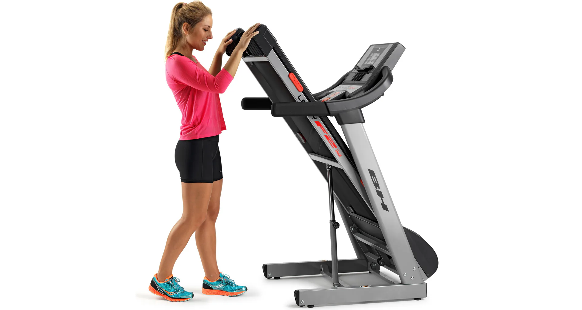 Běžecký pás BH Fitness F2W DUAL disponuje snadno ovladatelným počítačem, držákem na lahev, senzory pro měření tepové frekvence a transportními kolečky. Po tréninku trenažér snadno a rychle složíte.
