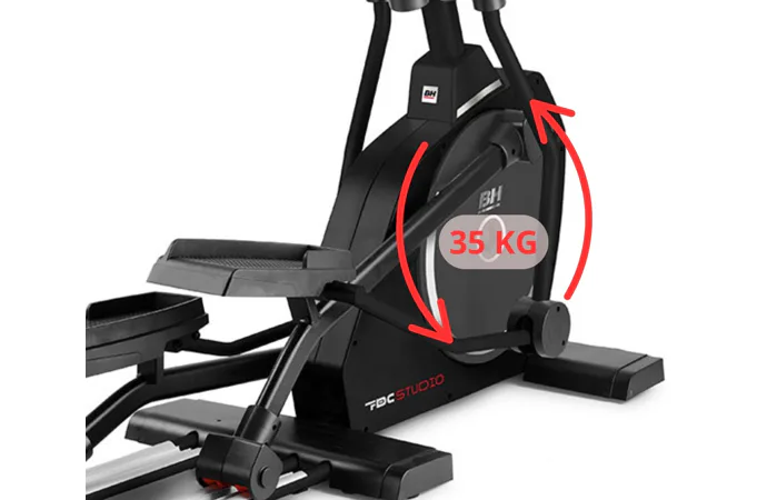 Stabilní a masivní konstrukce BH FITNESS FDC20 Studio Multimedia s vysokou nosností spolu s kompletním osazením ložisky a kvalitními komponenty zaručuje dlouhou životnost stroje. Přirozená ergonomie stroje je zaručena 51 cm dlouhým krokem a vzdáleností mezi pedály jen 10 cm.