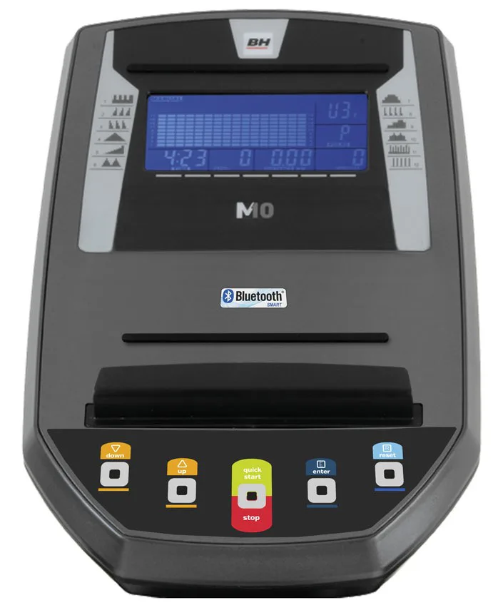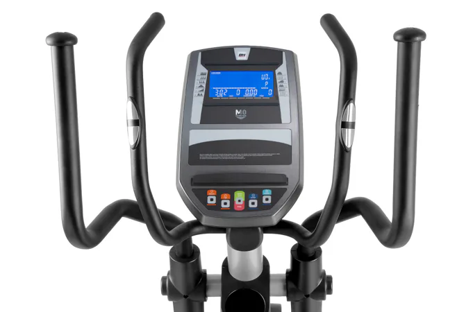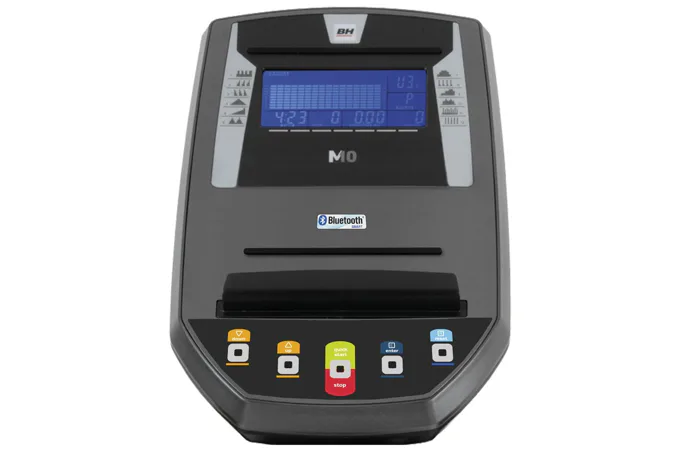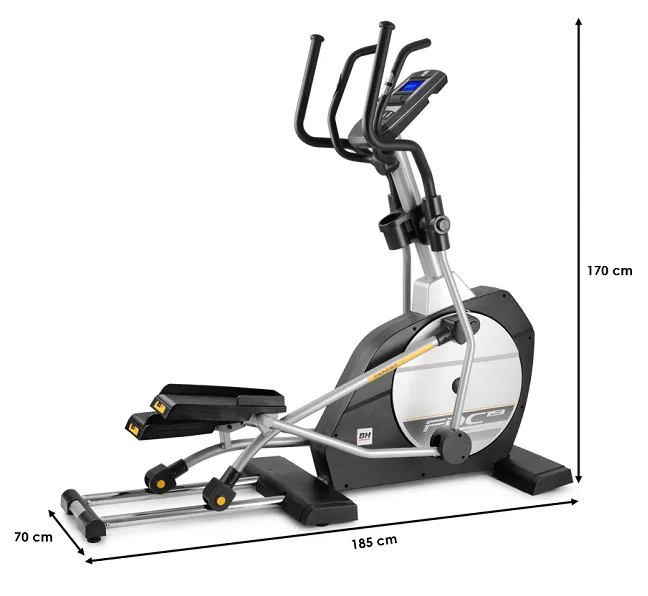Eliptický trenažér BH Fitness i.FDC19 je vybaven přehledným podsvětleným počítačem s bluetooth připojením a držákem na tablet / smartphone, senzory na měření tepové frekvence, transportními kolečky a vyrovnávači nerovnosti.