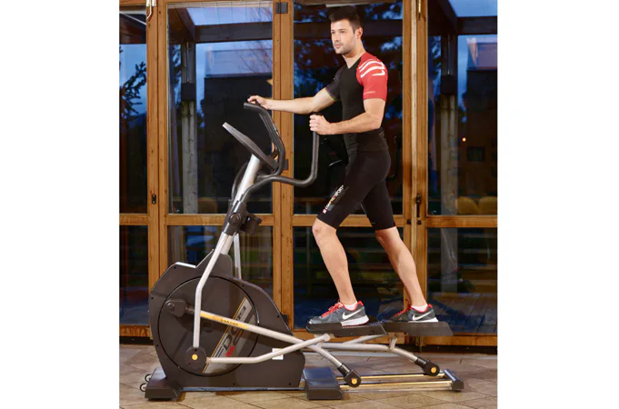 Jeho velkou výhodou je kvalitní konstrukce a komfortní chod, který zajišťuje setrvačníkový systém umístěný v přední části stroje. Přirozený a ergonomicky vyladěný pohyb minimalizuje zatížení kloubů a páteře.