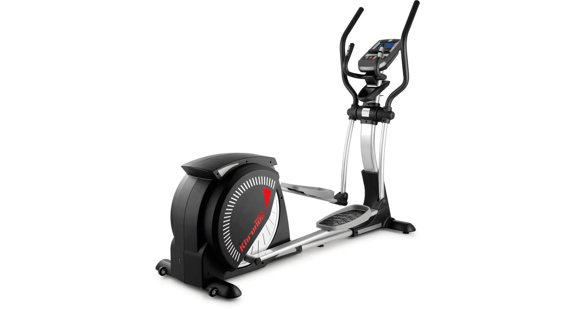 Eliptický trenažér BH Fitness i.Super Khronos je vybaven přehledným počítačem držákem na tablet/smartphone, senzory na měření tepové frekvence, transportními kolečky a vyrovnávači nerovnosti.