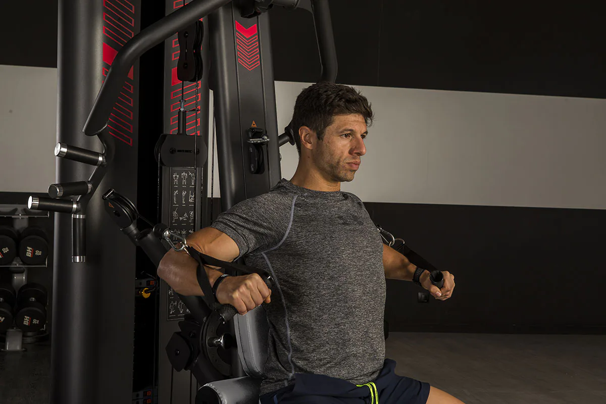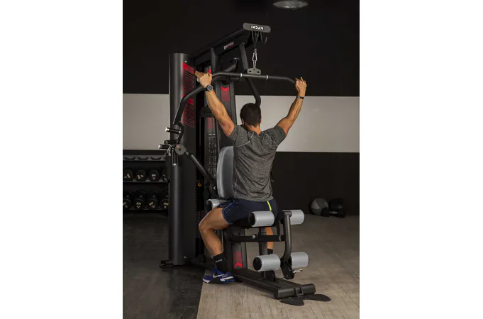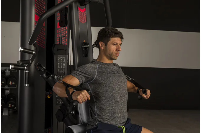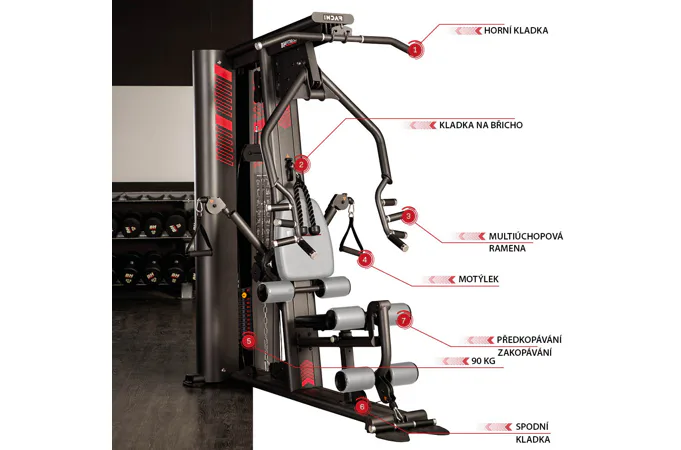 Pro maximální ergonomii při cvičení je možné polohovat sedá a zádovou opěrku. Do více poloh lze také nastavit ramena kladek a rameno s multiúchopovými madly.