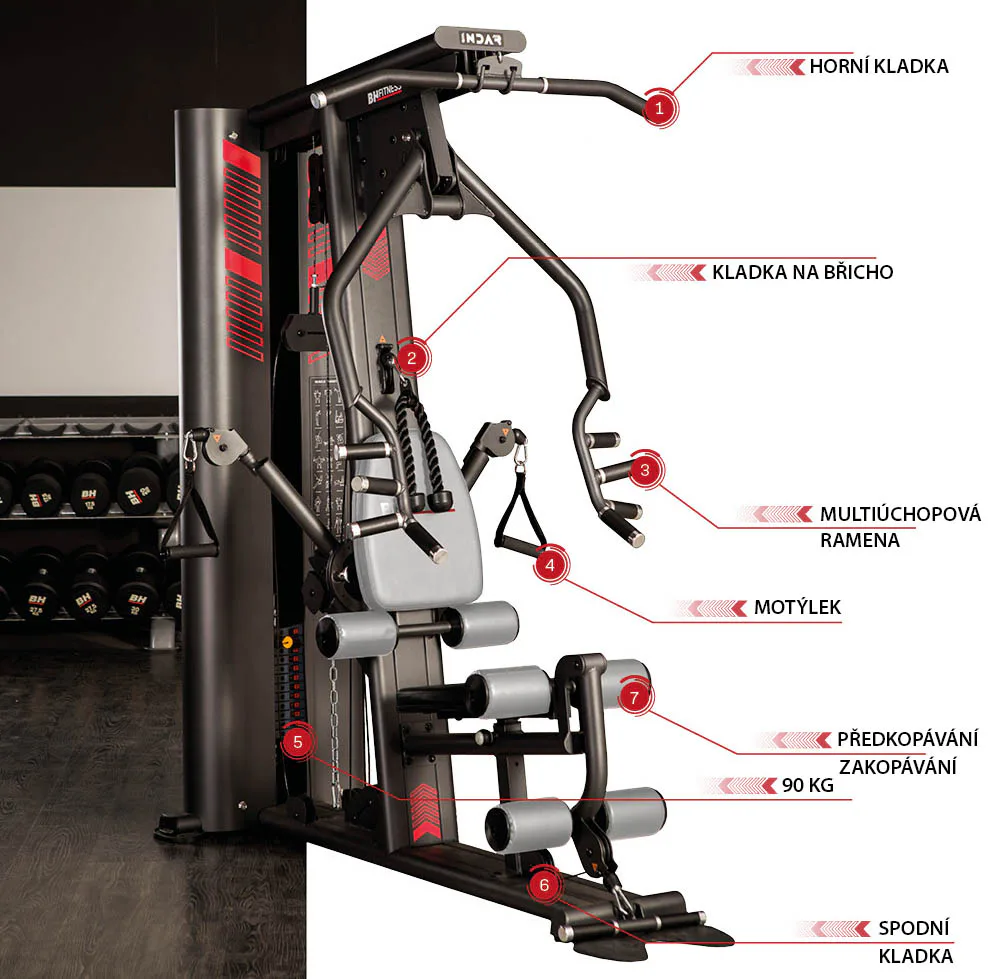 Věž BH FITNESS Indar nabízí zásobník zátěže o váze 90 kg, což po zpřevodování umožňuje cvičit s vahou až 125 kg. Zároveň nabízí spousty druhů cvičení formou překopávání, zakopávání, tlaků na prsa, stahování kladek, veslování, bicepsových zdvihů atd.. Tento model je tak ideální pro začínající, ale i pokročilé cvičence.