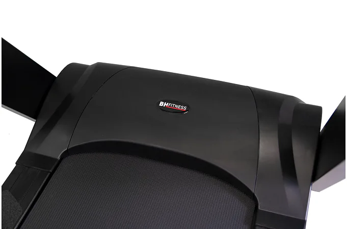 Běžecký pás BH Fitness INERTIA G688 SmartFocus 16" disponuje moderním počítačem s 16" dotykovým displejem a snadným ovladáním, držáky na lahve, senzory pro měření tepové frekvence a transportními kolečky.