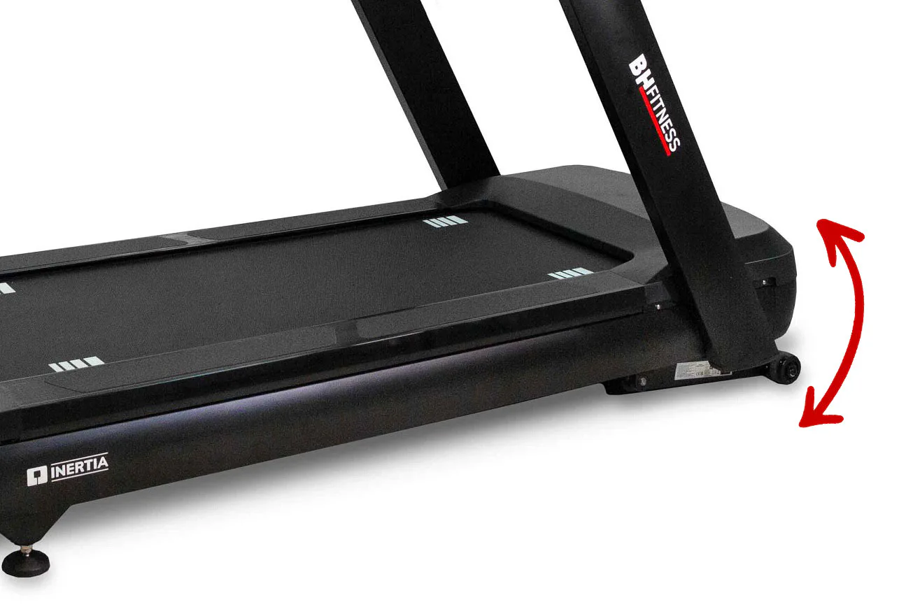 Běžecký pás BH Fitness INERTIA G788 LED disponuje moderním počítačem s Bluetooth a snadným ovládáním, držáky na lahve, senzory pro měření tepové frekvence a transportními kolečky.