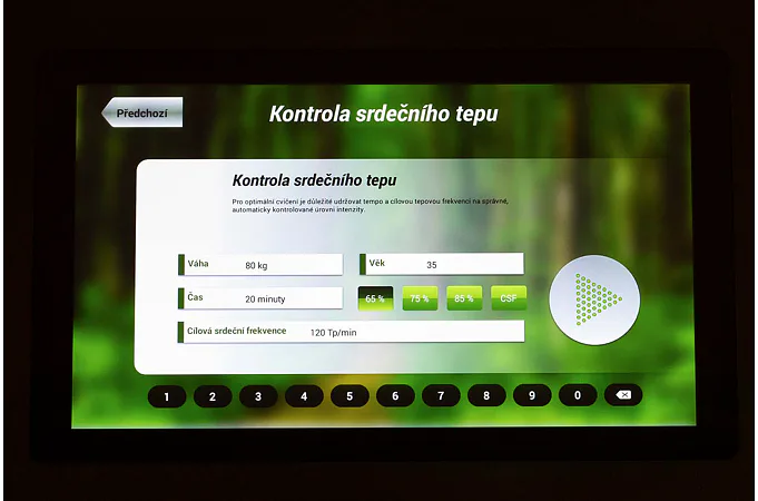 Informace potřebné v průběhu cvičení můžete sledovat na přehledném počítači s 12" dotykovou obrazovkou SmartFocus a bohatou nabídkou programů. Dále trenažér disponuje senzory pro snímání tepové frekvence, transportními kolečky, vyrovnávači nerovnosti a držákem na lahev.