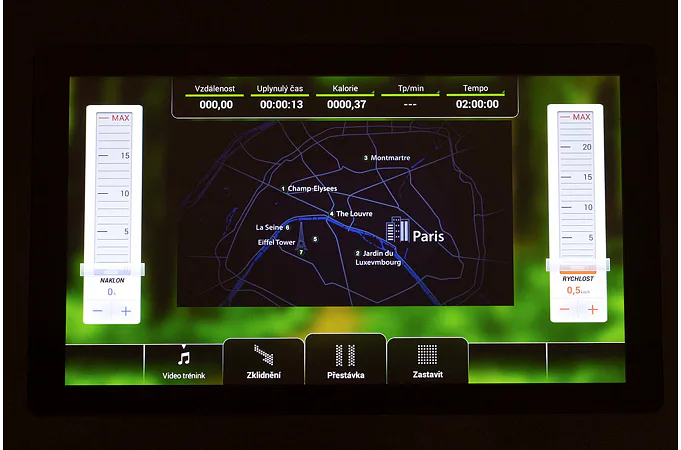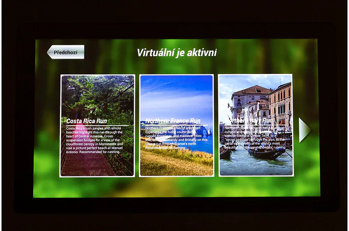 Informace potřebné v průběhu cvičení můžete sledovat na přehledném počítači s 16" dotykovou obrazovkou SmartFocus a bohatou nabídkou programů. Dále trenažér disponuje senzory pro snímání tepové frekvence, transportními kolečky, vyrovnávači nerovnosti a držákem na lahev.