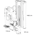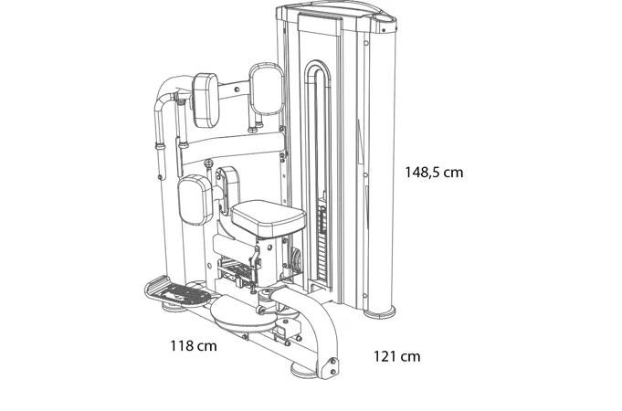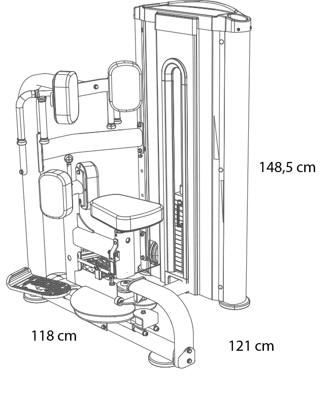 Posilovač břišního svalstva L430 se rozkládá na půdorysu o rozměrech (d x š x v) 118 cm, 121 cm a 148,5 cm, nezabere vám tedy moc prostoru a stále zůstane dostatek místa i na další stroje.