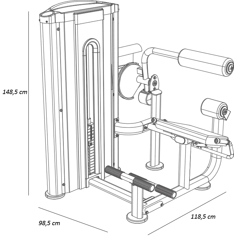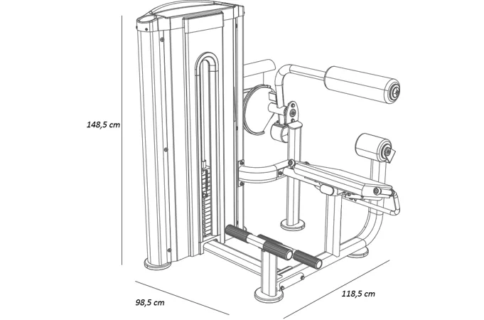Posilovací stroj L510 se rozkládá na půdorysu o rozměrech (d x š x v) 118 cm, 99 cm a 148,5 cm, nezabere vám tedy moc prostoru a stále zůstane dostatek místa i na další stroje.