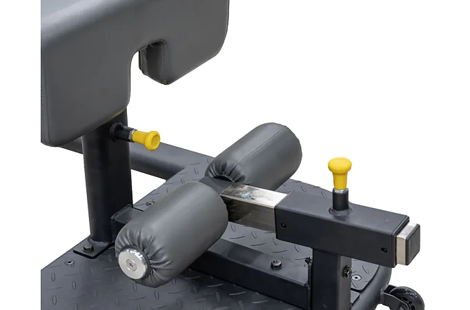 Stroj navíc obsahuje nastavitelné prvky jako jsou: Nastavitelná opěrka ze zadní strany stehen, pro ideální zvolení výšky podle potřeby a dále nastavitelné válce pro udržení chodidel a nohou na jednom místě. Nastavení, je díky kolíku na pružince velmi rychlé a efektivní.
