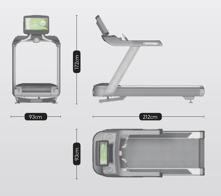 Díky střídavému AC motoru s maximálním výkonem 8 HP (trvalý výkon 6 HP), který je určen do komerčního provozu, umožňuje stroj dlouhodobě využívat rychlost v rozmezí 0,8 - 26 km/h při sklonu -3~16 %. Prostorná, odpružená běžecká plocha má rozměry 58 x 160 cm.