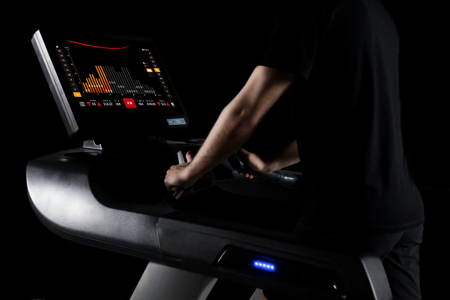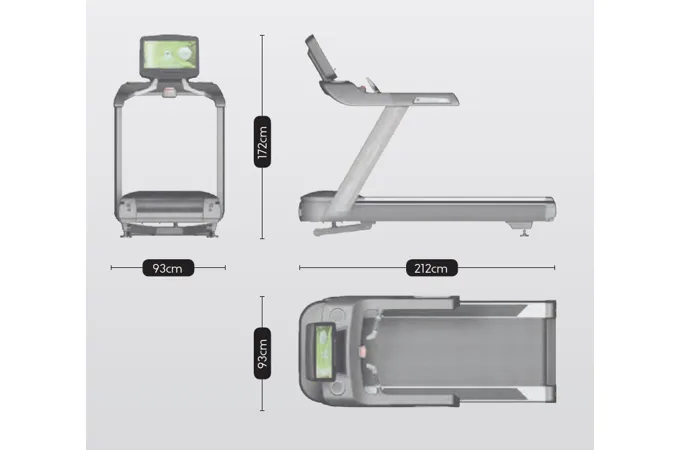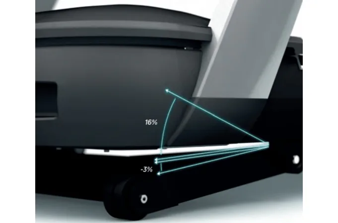 Díky střídavému AC motoru s maximálním výkonem 8 HP (trvalý výkon 6 HP), který je určen do komerčního provozu, umožňuje stroj dlouhodobě využívat rychlost v rozmezí 0,8 - 26 km/h při sklonu od -3% do 16%. Prostorná, odpružená běžecká plocha má rozměry 58 x 160 cm.