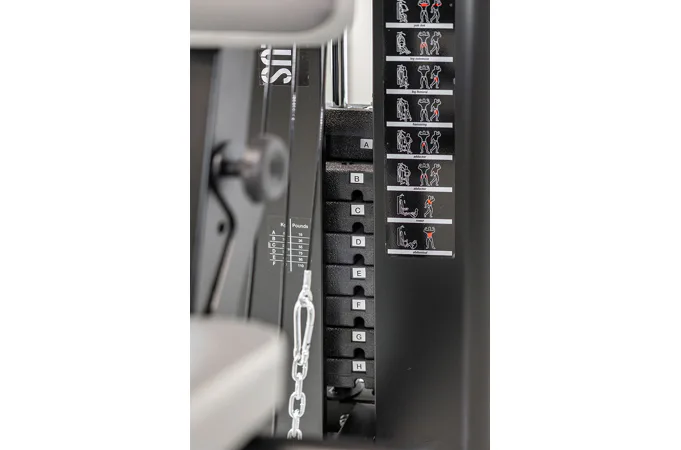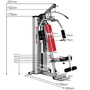 Věž má masivní ocelovou konstrukci z trubkových profilů s dostatečnou sílou stěny a odolnou práškovou povrchovou úpravu. Možnost složení sedáku pro větší úsporu místa.Součástí výbavy je sada 54 kg krytého závaží, které dokáží vytvořit tahový odpor až 80 kg.