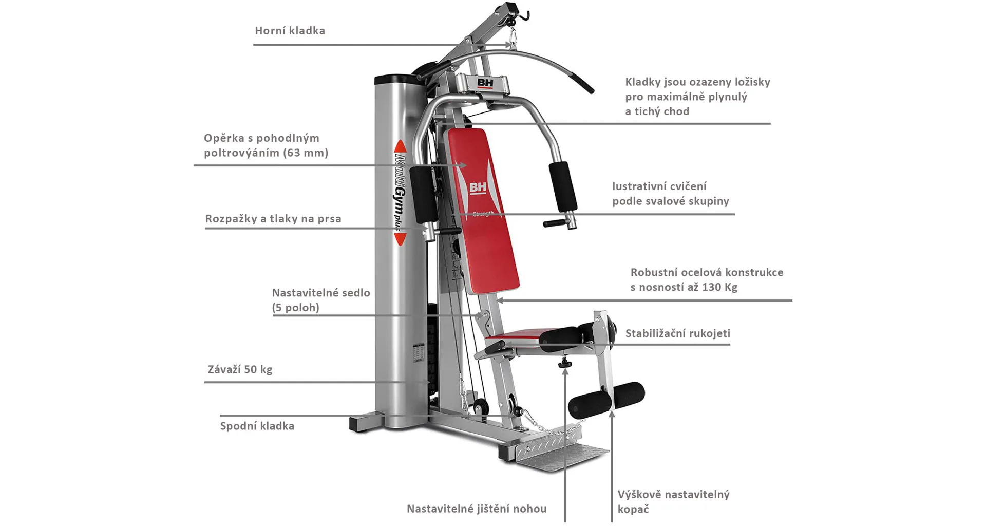 Díky vysoce odolným komponentům, je nosnost BH Fitness Multigym Plus Black 100 kg!